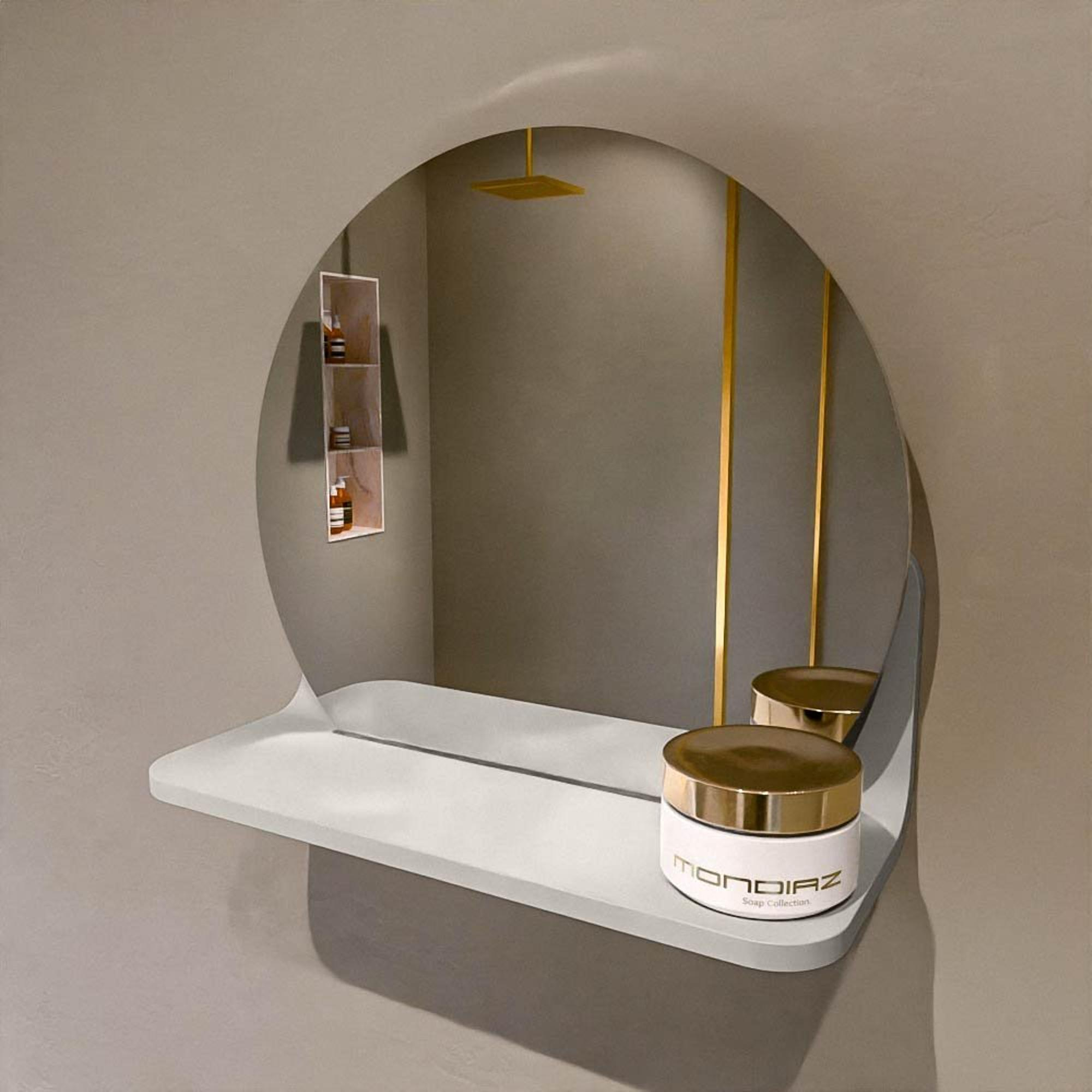Mondiaz SPOT Badkamerspiegel - rond 30cm - spiegelplanchet - kleur Linen