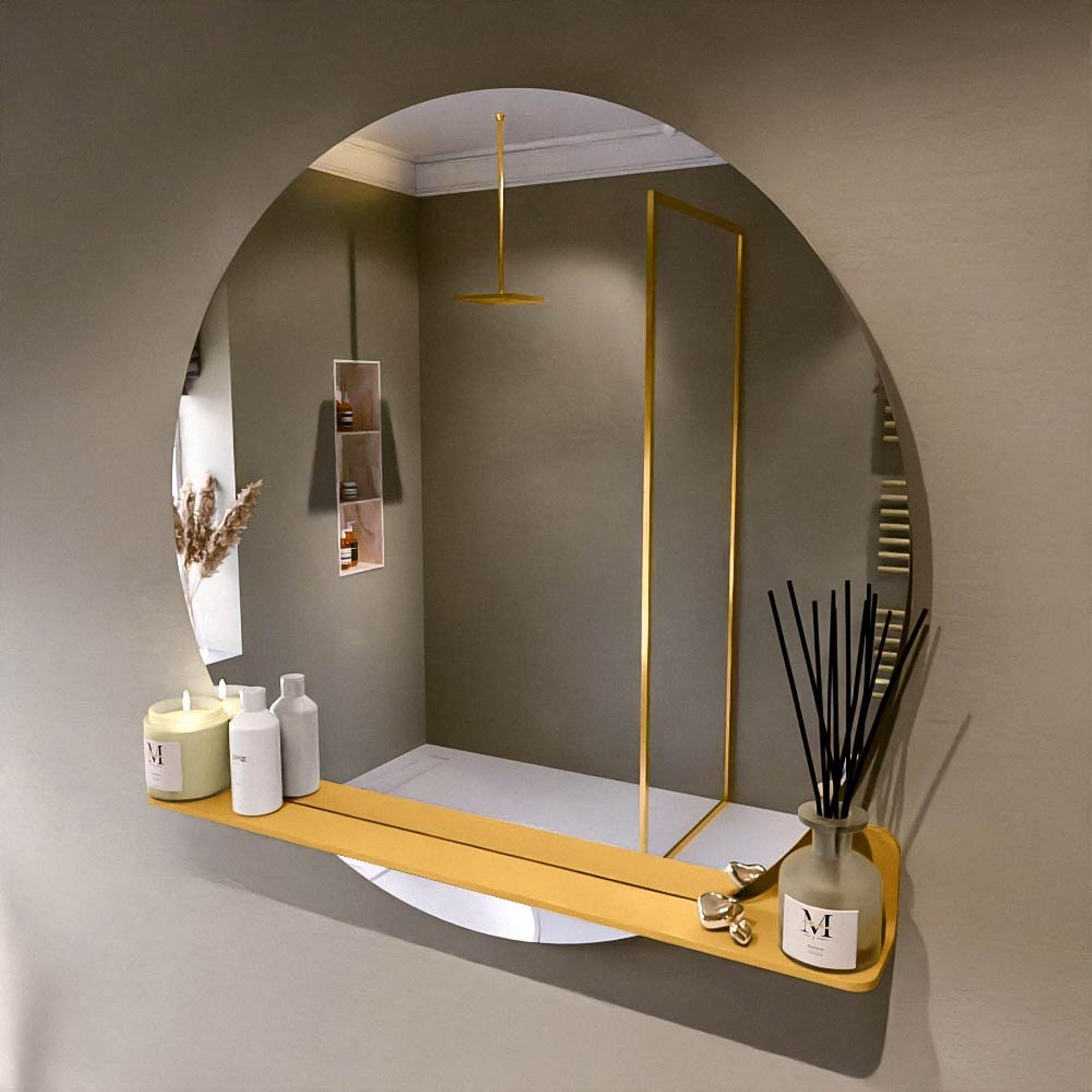 Mondiaz SPOT Badkamerspiegel - rond 100cm - spiegelplanchet - kleur Ocher