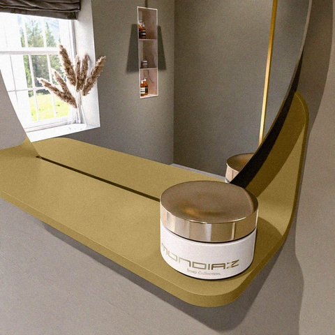 Beschikbaar in 17 effen kleuren die perfect passen bij elke inrichting. Solid Surface is krasbestendig, onderhoudsvriendelijk en garandeert een langdurige, luxueuze afwerking. Deze spiegel biedt de ideale combinatie van functionaliteit en design!