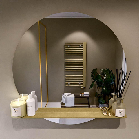 Mondiaz SPOT Badkamerspiegel - rond 90cm - spiegelplanchet - kleur Oro