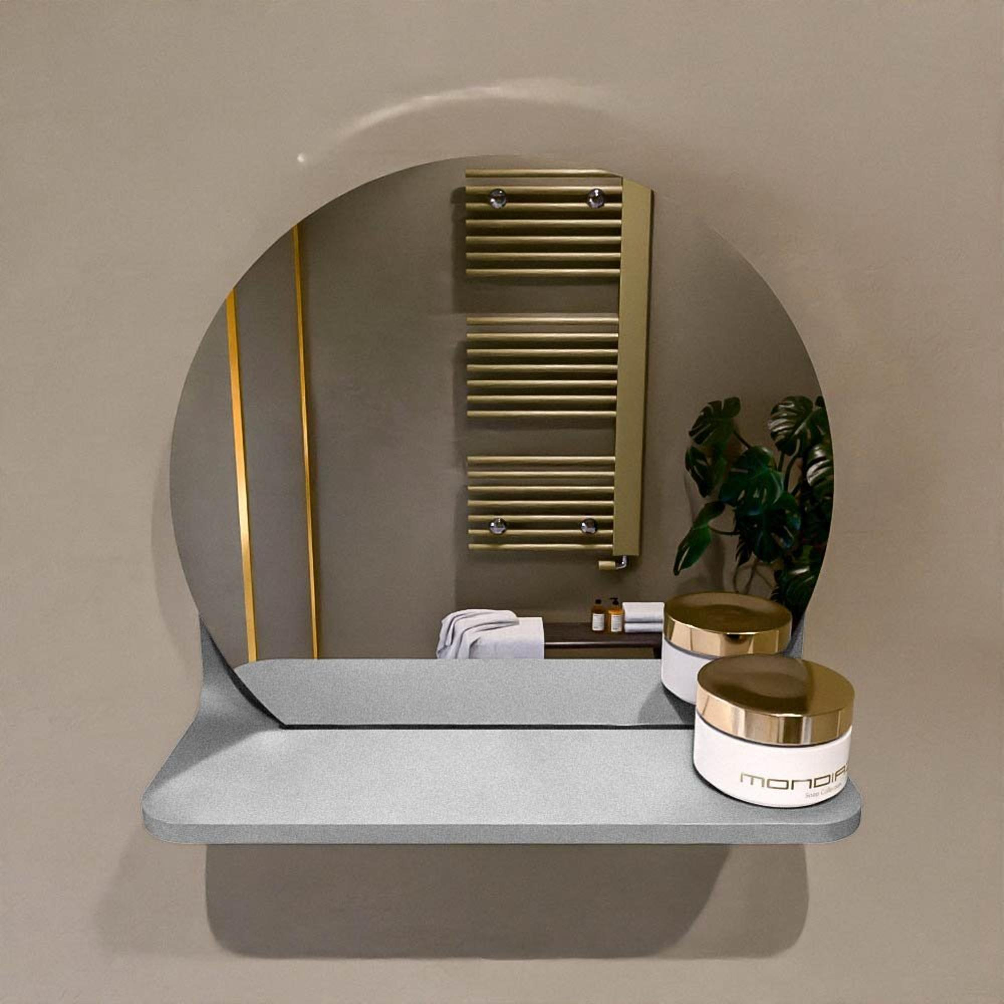 Mondiaz SPOT Badkamerspiegel - rond 30cm - spiegelplanchet - kleur Plata
