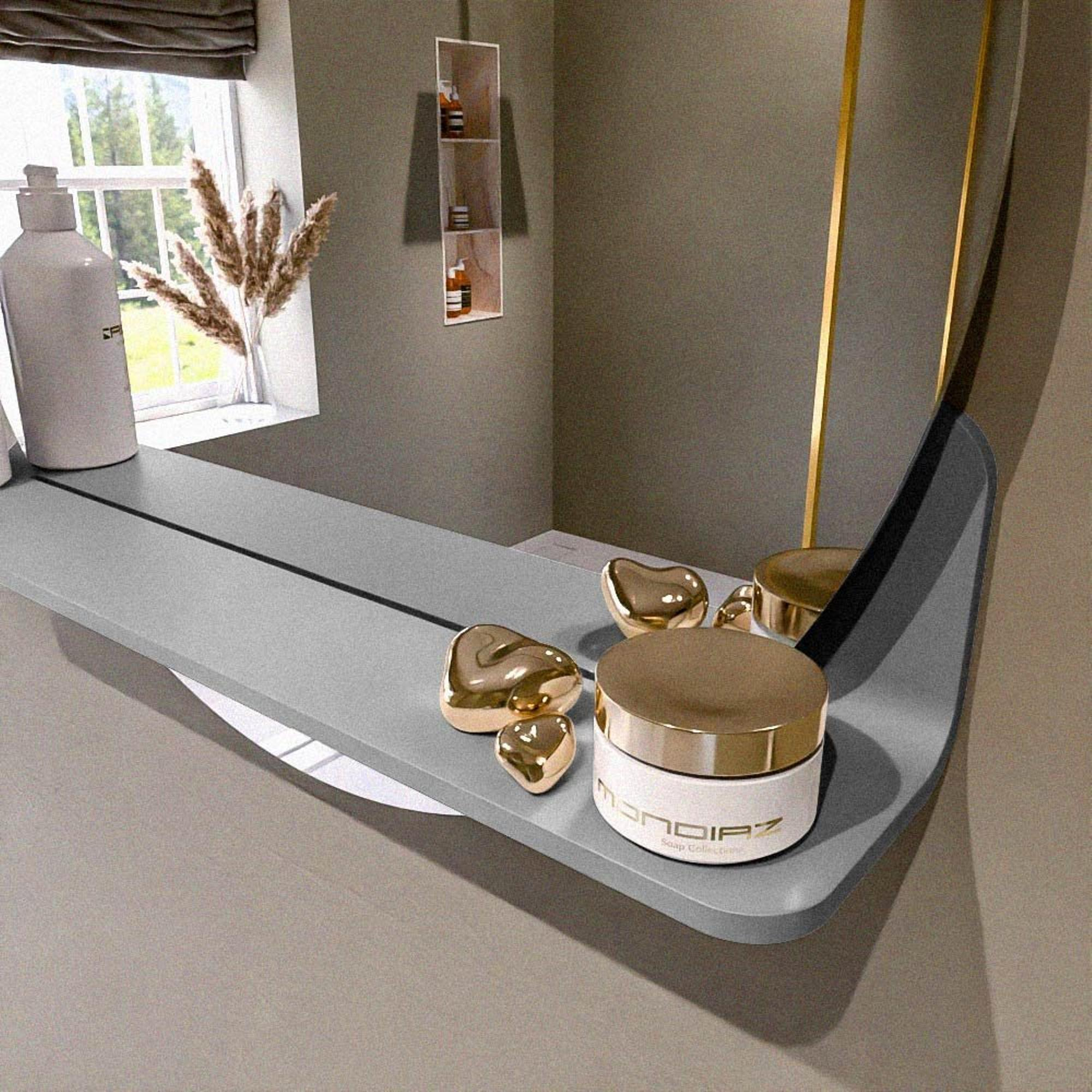 Beschikbaar in 17 effen kleuren die perfect passen bij elke inrichting. Solid Surface is krasbestendig, onderhoudsvriendelijk en garandeert een langdurige, luxueuze afwerking. Deze spiegel biedt de ideale combinatie van functionaliteit en design!