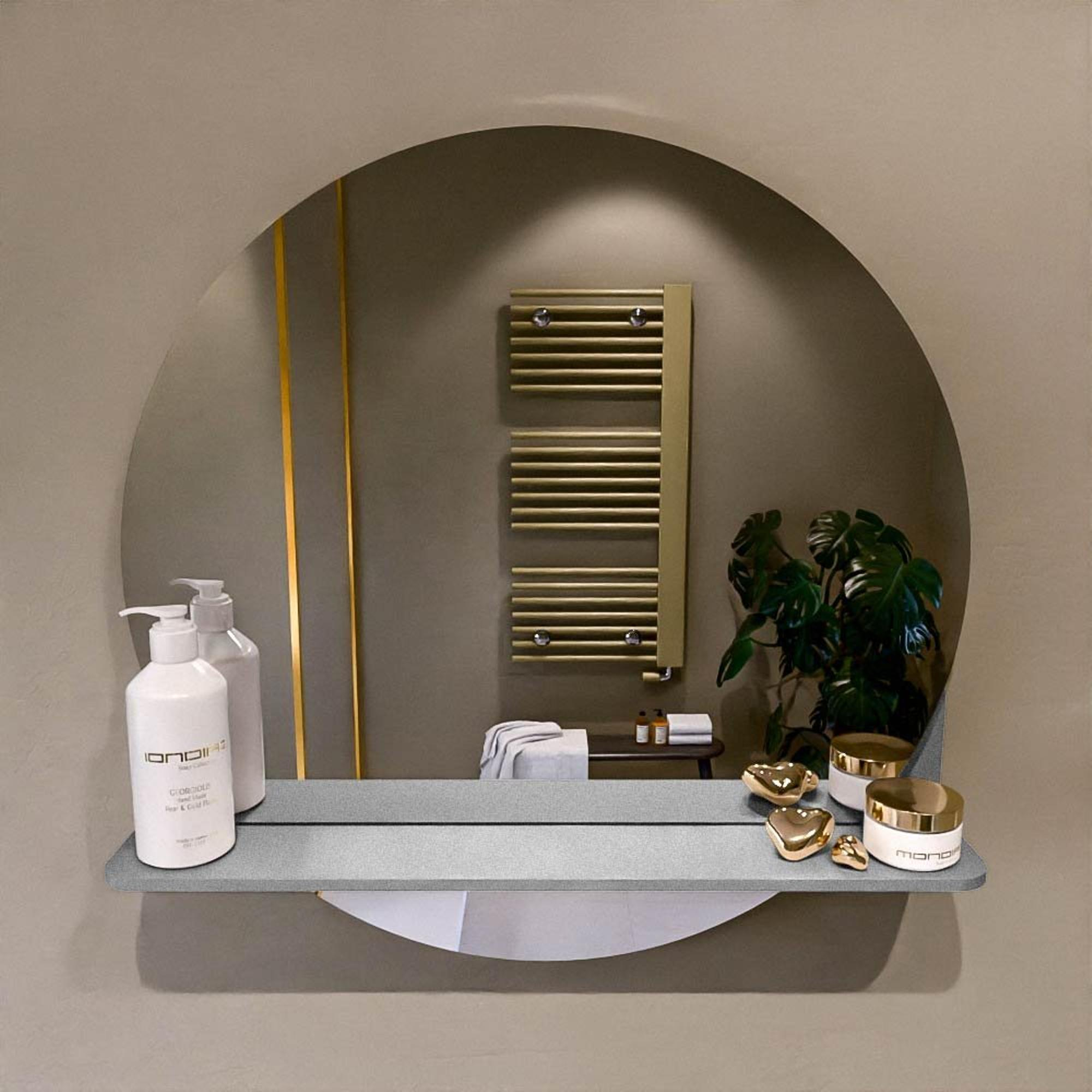 Mondiaz SPOT Badkamerspiegel - rond 60cm - spiegelplanchet - kleur Plata