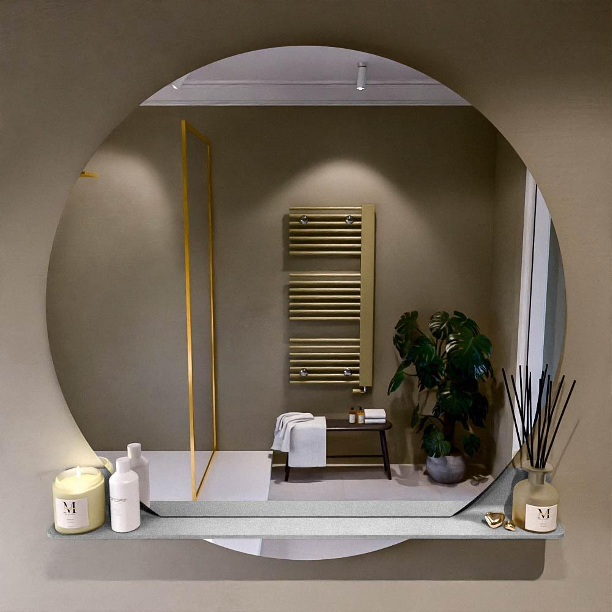 Mondiaz SPOT Badkamerspiegel - rond 120cm - spiegelplanchet - kleur Plata