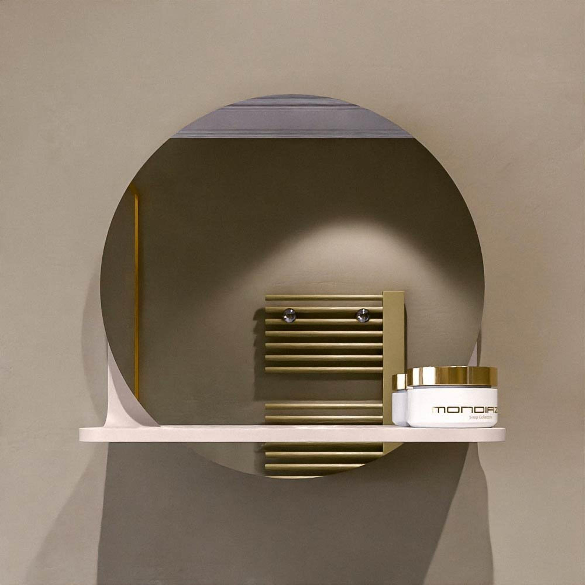 Mondiaz SPOT Badkamerspiegel - rond 30cm - spiegelplanchet - kleur Rosee
