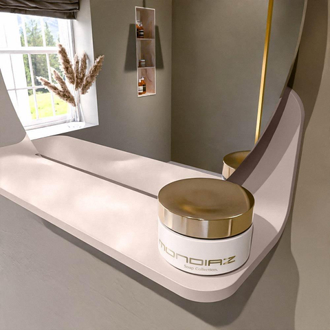 Beschikbaar in 17 effen kleuren die perfect passen bij elke inrichting. Solid Surface is krasbestendig, onderhoudsvriendelijk en garandeert een langdurige, luxueuze afwerking. Deze spiegel biedt de ideale combinatie van functionaliteit en design!
