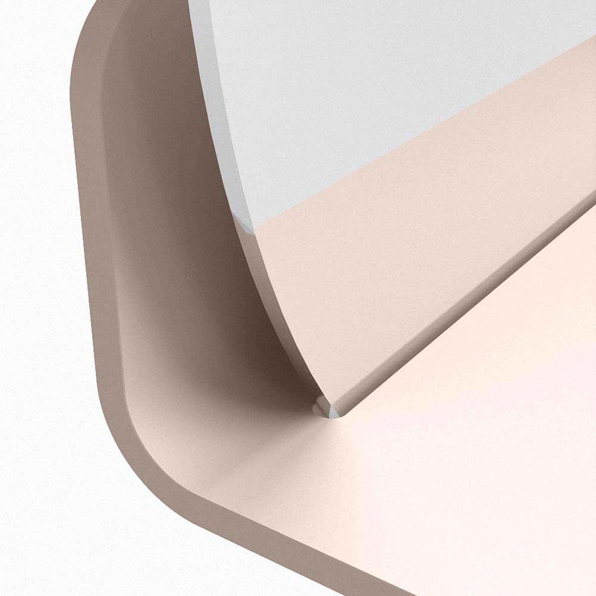 Het planchet, met zijn vloeiend afgeronde hoeken, biedt handige opbergruimte voor uw dagelijkse benodigdheden. De spiegel is subtiel verzonken in het planchet, wat zorgt voor een moderne en stijlvolle uitstraling.