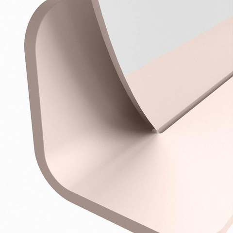Het planchet, met zijn vloeiend afgeronde hoeken, biedt handige opbergruimte voor uw dagelijkse benodigdheden. De spiegel is subtiel verzonken in het planchet, wat zorgt voor een moderne en stijlvolle uitstraling.