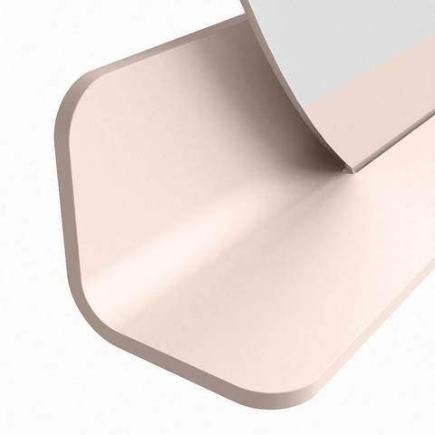 Het planchet, met zijn vloeiend afgeronde hoeken, biedt handige opbergruimte voor uw dagelijkse benodigdheden. De spiegel is subtiel verzonken in het planchet, wat zorgt voor een moderne en stijlvolle uitstraling.