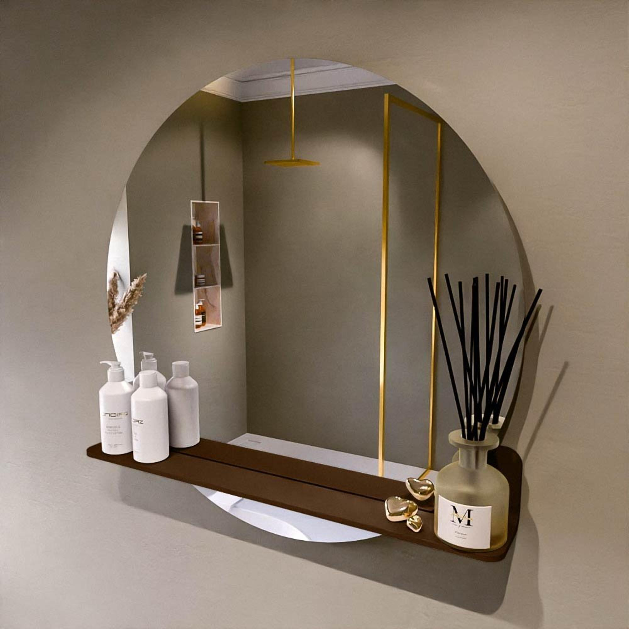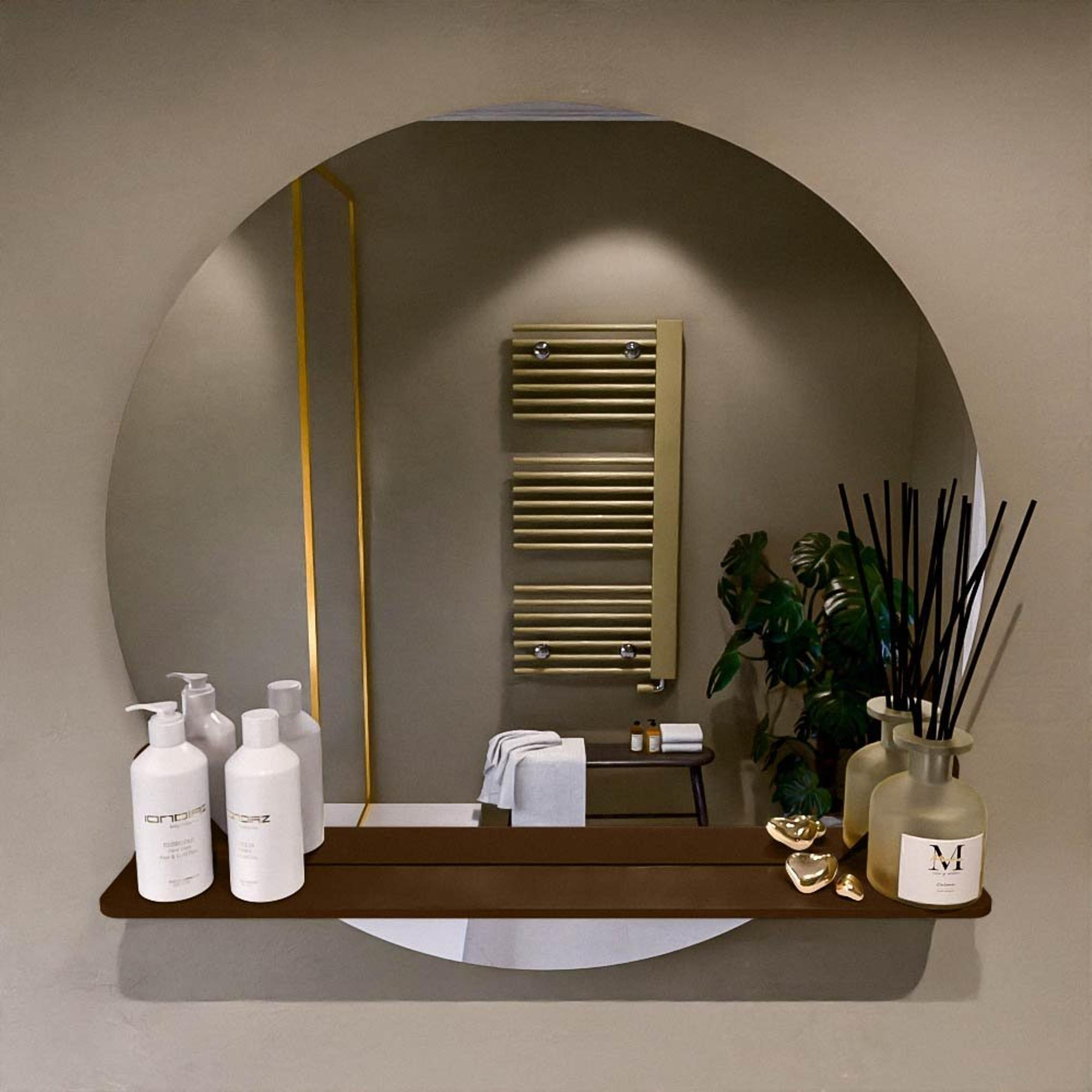 Mondiaz SPOT Badkamerspiegel - rond 80cm - spiegelplanchet - kleur Rust