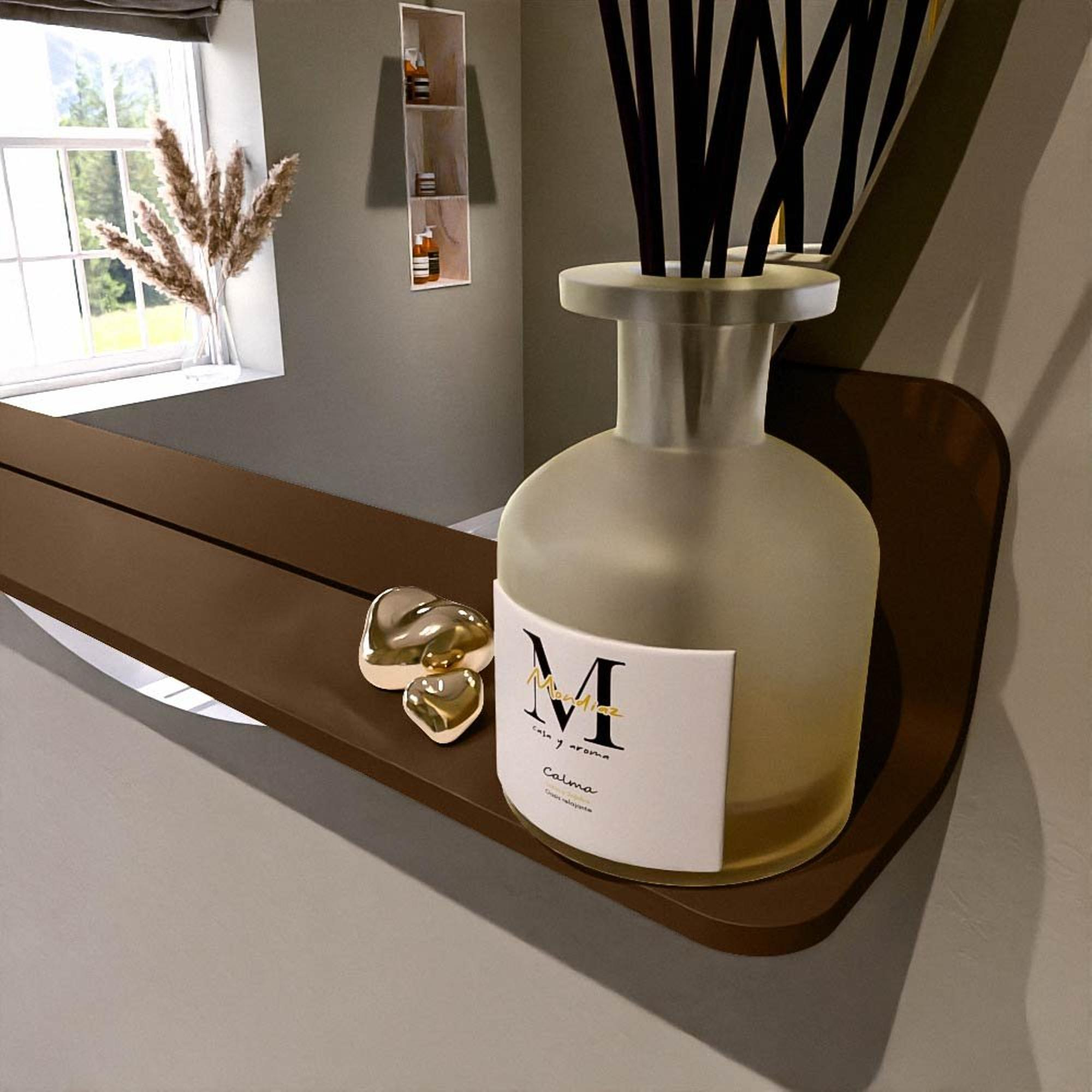 Het planchet, met zijn vloeiend afgeronde hoeken, biedt handige opbergruimte voor uw dagelijkse benodigdheden. De spiegel is subtiel verzonken in het planchet, wat zorgt voor een moderne en stijlvolle uitstraling.