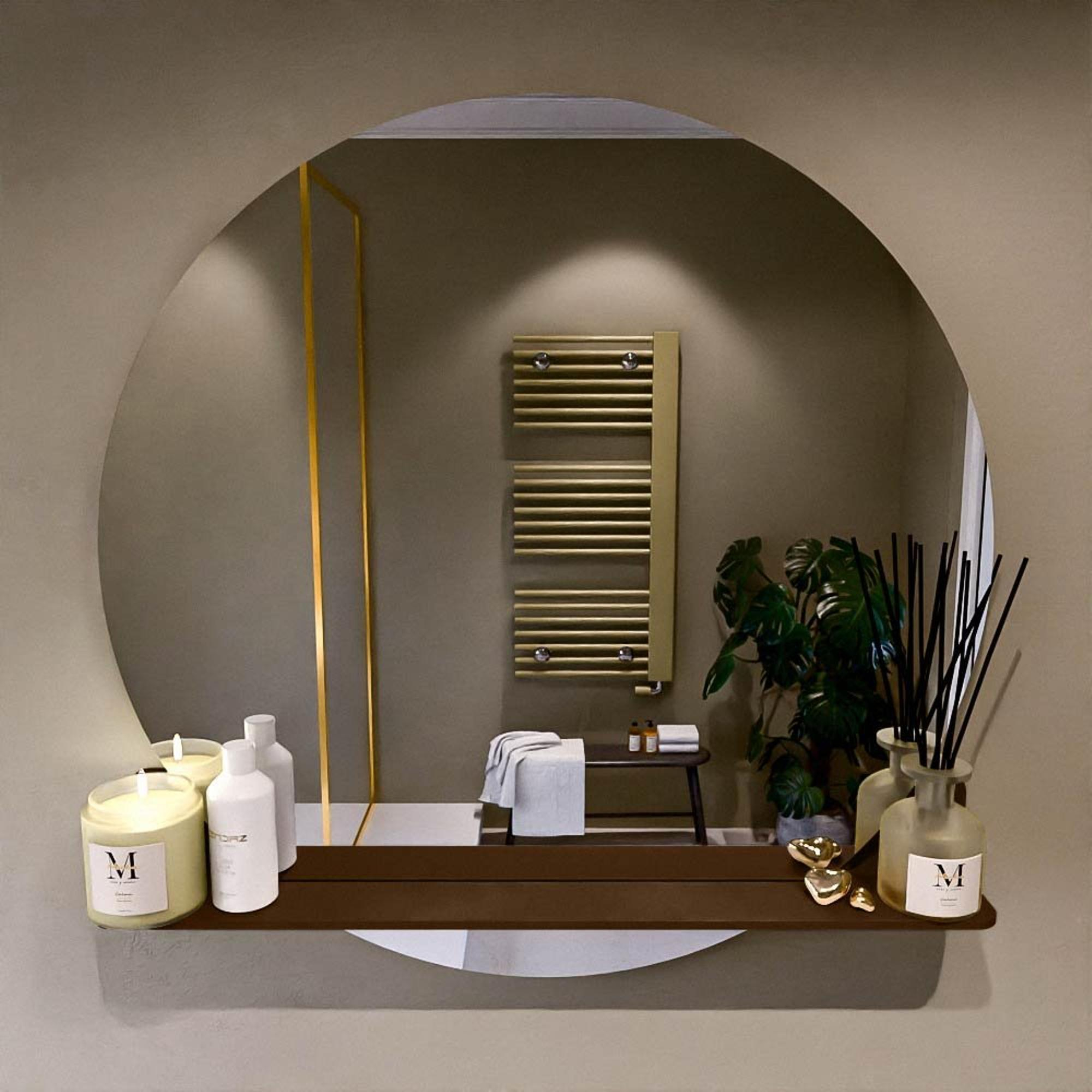 Mondiaz SPOT Badkamerspiegel - rond 90cm - spiegelplanchet - kleur Rust