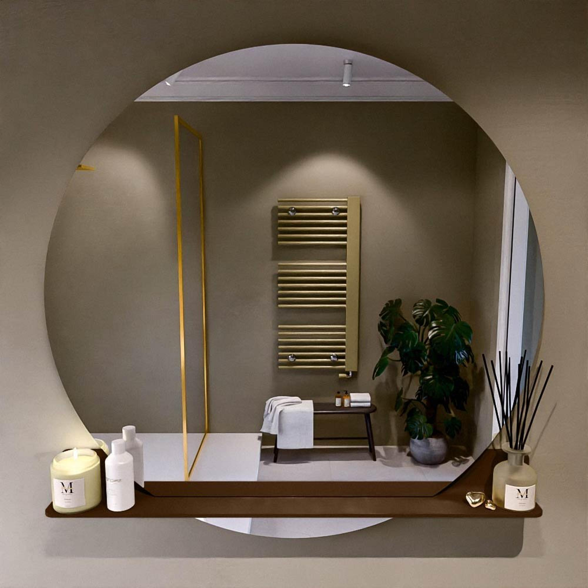 Mondiaz SPOT Badkamerspiegel - rond 120cm - spiegelplanchet - kleur Rust