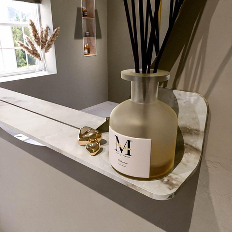 Beschikbaar in 5 CORIAN kleuren die perfect passen bij elke inrichting. Solid Surface is krasbestendig, onderhoudsvriendelijk en garandeert een langdurige, luxueuze afwerking. Deze spiegel biedt de ideale combinatie van functionaliteit en design!