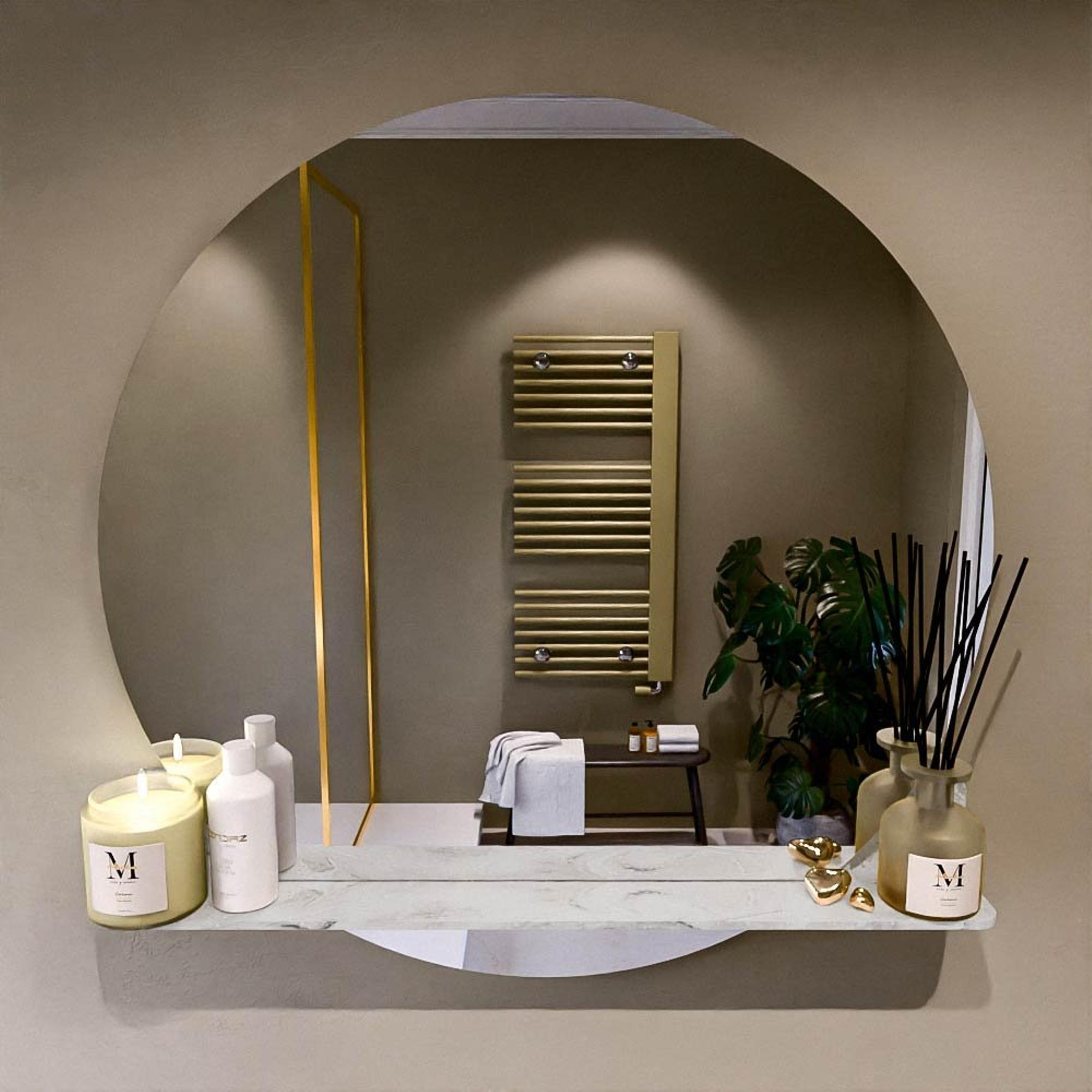 Mondiaz SPOT Badkamerspiegel - rond 90cm - spiegelplanchet - kleur Glace