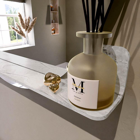 Beschikbaar in 5 CORIAN kleuren die perfect passen bij elke inrichting. Solid Surface is krasbestendig, onderhoudsvriendelijk en garandeert een langdurige, luxueuze afwerking. Deze spiegel biedt de ideale combinatie van functionaliteit en design!