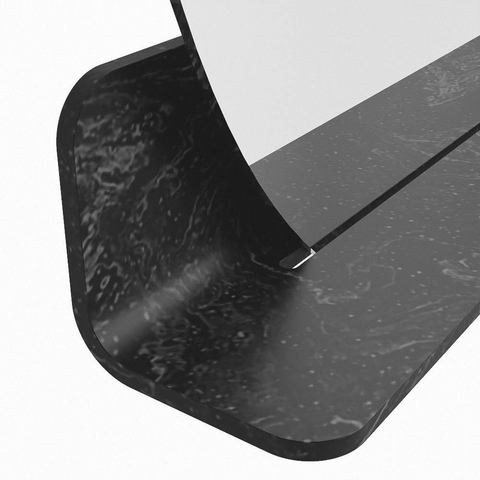 Het planchet, met zijn vloeiend afgeronde hoeken, biedt handige opbergruimte voor uw dagelijkse benodigdheden. De spiegel is subtiel verzonken in het planchet, wat zorgt voor een moderne en stijlvolle uitstraling.