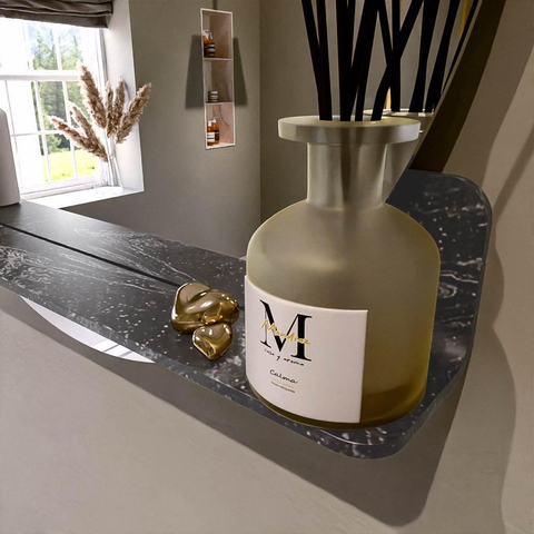 Beschikbaar in 5 CORIAN kleuren die perfect passen bij elke inrichting. Solid Surface is krasbestendig, onderhoudsvriendelijk en garandeert een langdurige, luxueuze afwerking. Deze spiegel biedt de ideale combinatie van functionaliteit en design!