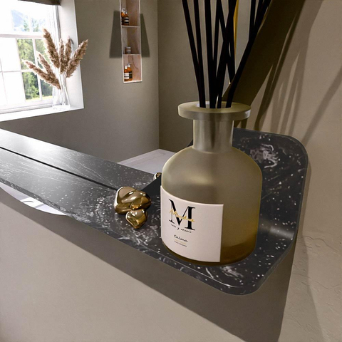 Beschikbaar in 5 CORIAN kleuren die perfect passen bij elke inrichting. Solid Surface is krasbestendig, onderhoudsvriendelijk en garandeert een langdurige, luxueuze afwerking. Deze spiegel biedt de ideale combinatie van functionaliteit en design!