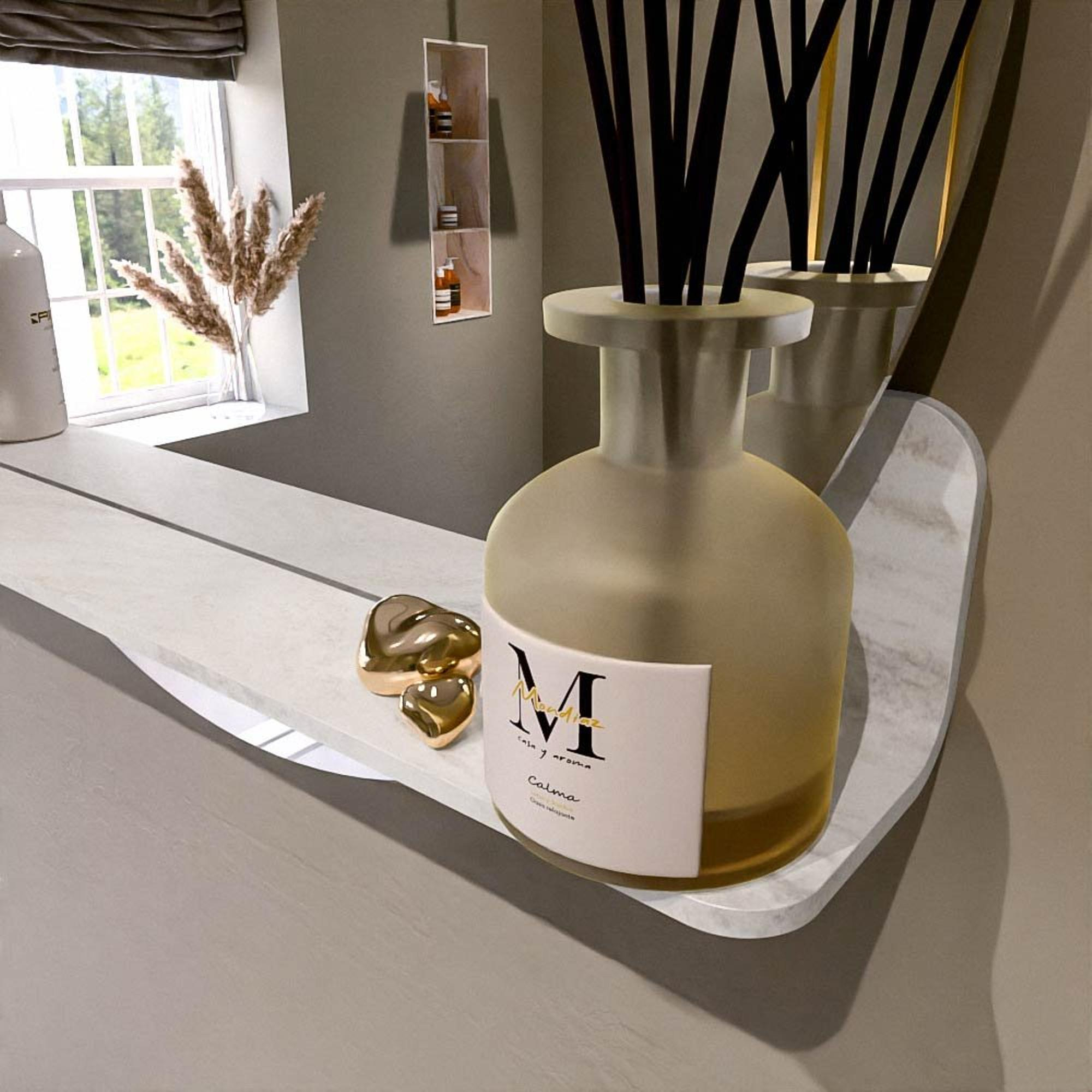 Beschikbaar in 5 CORIAN kleuren die perfect passen bij elke inrichting. Solid Surface is krasbestendig, onderhoudsvriendelijk en garandeert een langdurige, luxueuze afwerking. Deze spiegel biedt de ideale combinatie van functionaliteit en design!