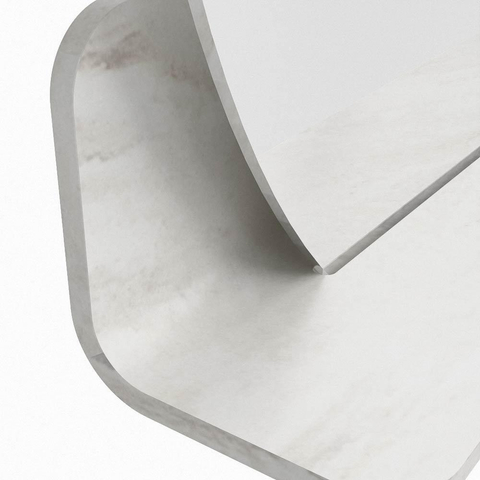Het planchet, met zijn vloeiend afgeronde hoeken, biedt handige opbergruimte voor uw dagelijkse benodigdheden. De spiegel is subtiel verzonken in het planchet, wat zorgt voor een moderne en stijlvolle uitstraling.