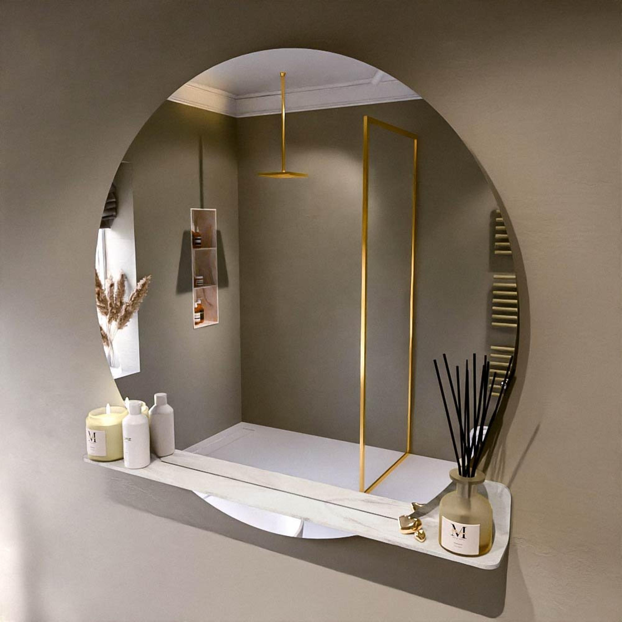 Geef uw ruimte een elegante en praktische Touch met deze ronde spiegel, waarbij de spiegel prachtig is verwerkt in een verfijnd planchet van Corian Solid Surface. Het design is niet alleen functioneel, maar ook een stijlvolle toevoeging aan moderne interieurs, ideaal te combineren met onze de DLUX-serie, zoals de ALAN, de VICA en de TURE DLUX.