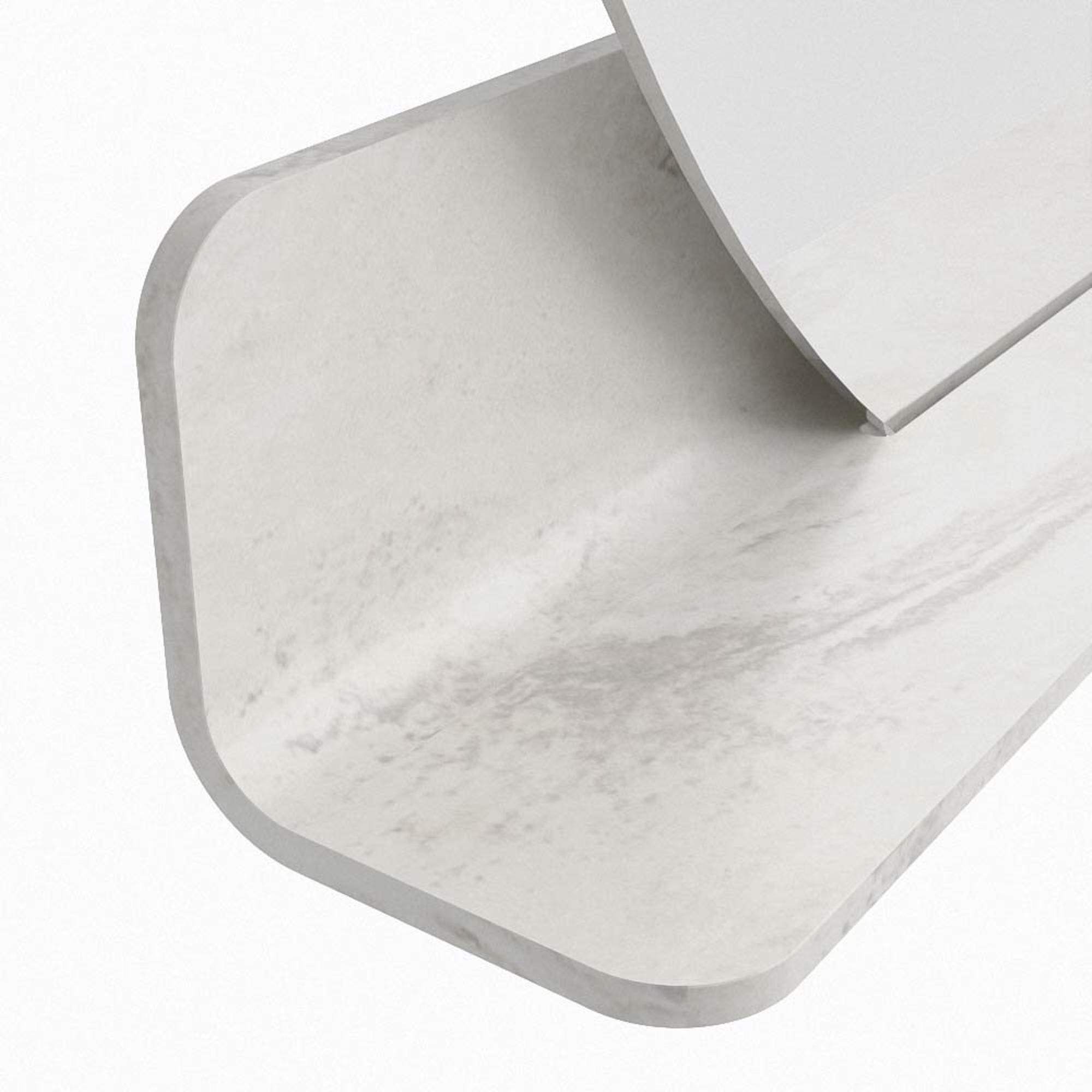 Het planchet, met zijn vloeiend afgeronde hoeken, biedt handige opbergruimte voor uw dagelijkse benodigdheden. De spiegel is subtiel verzonken in het planchet, wat zorgt voor een moderne en stijlvolle uitstraling.