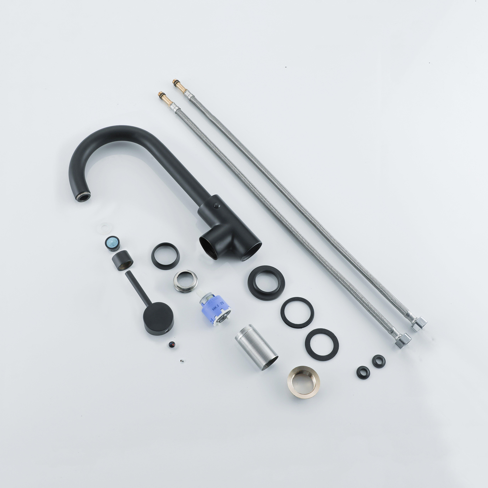 De stijlvolle Fortifura Calvi Wastafelmengkraan is ontworpen met oog voor detail en vakmanschap. Het hoge ontwerp zorgt voor een moderne uitstraling, terwijl de draaibare uitloop zorgt voor extra gemak en flexibiliteit. De matte zwarte afwerking geeft de kraan een luxe uitstraling die perfect past bij eigentijdse badkamers.