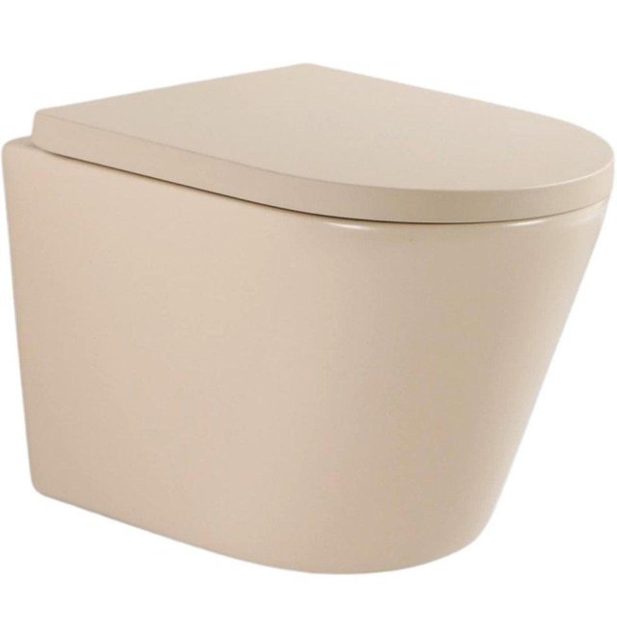 QeramiQ Dely Toiletset - Geberit UP100 inbouwreservoir - witte bedieningsplaat - softclose toilet zitting 35 mm - mat beige
