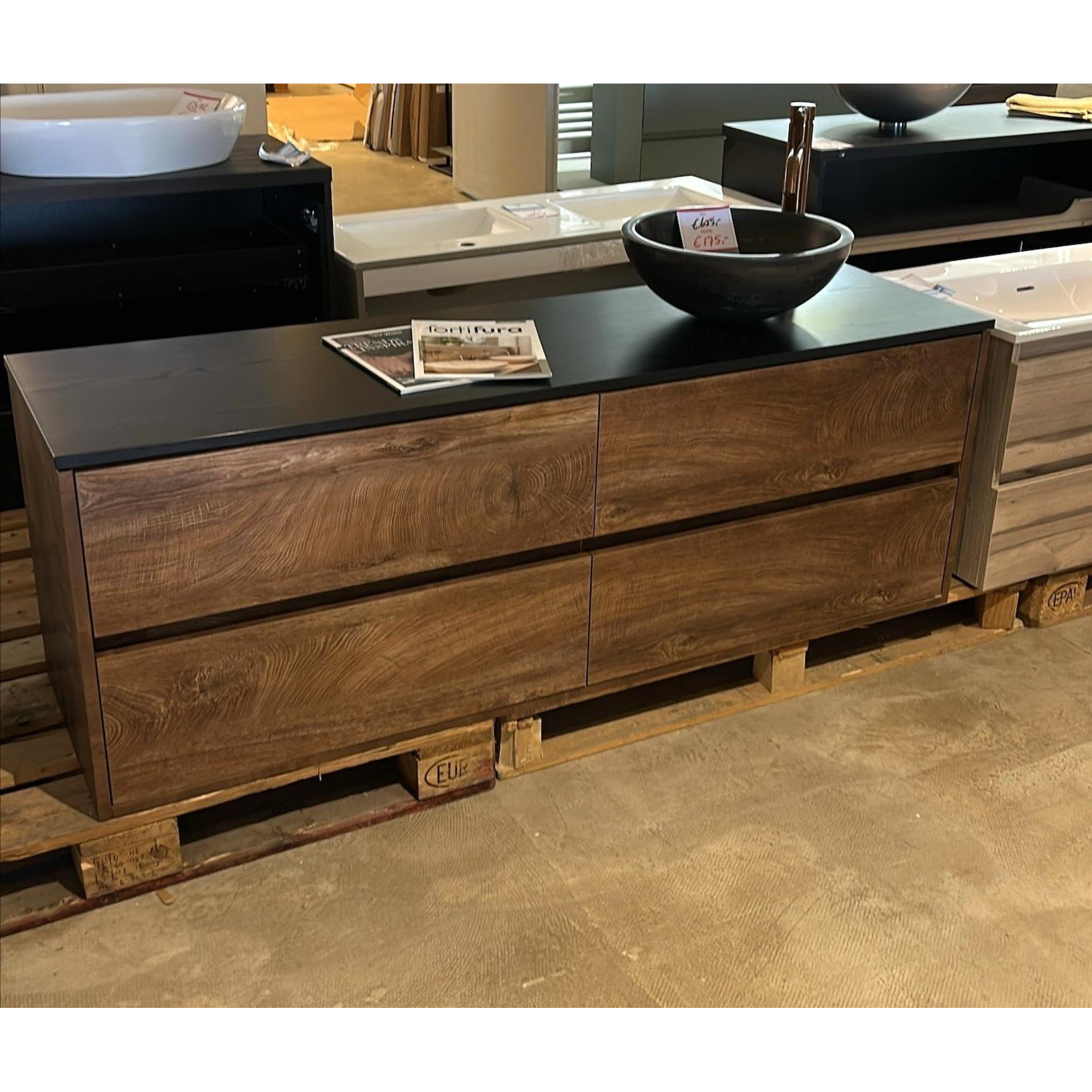 BRAUER Nexxt Wastafelonderkast - met topblad 160x46x55cm - 4 greeploze softclose lades - 2 sifonuitsparingen - MFC - viking shield - inclusief topblad - OUTLET UDEN