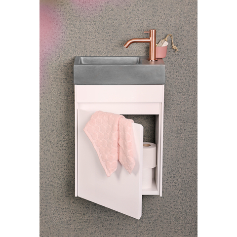 Naast zijn esthetische aantrekkingskracht is deze fonteinkast ook uiterst functioneel. Met een afmeting van 39.5x52x21.5cm biedt het voldoende ruimte voor het opbergen van essentiële badkamerbenodigdheden, terwijl het toch compact genoeg is om niet te veel ruimte in beslag te nemen. De hoogwaardige materialen zorgen voor duurzaamheid en langdurig gebruik.
