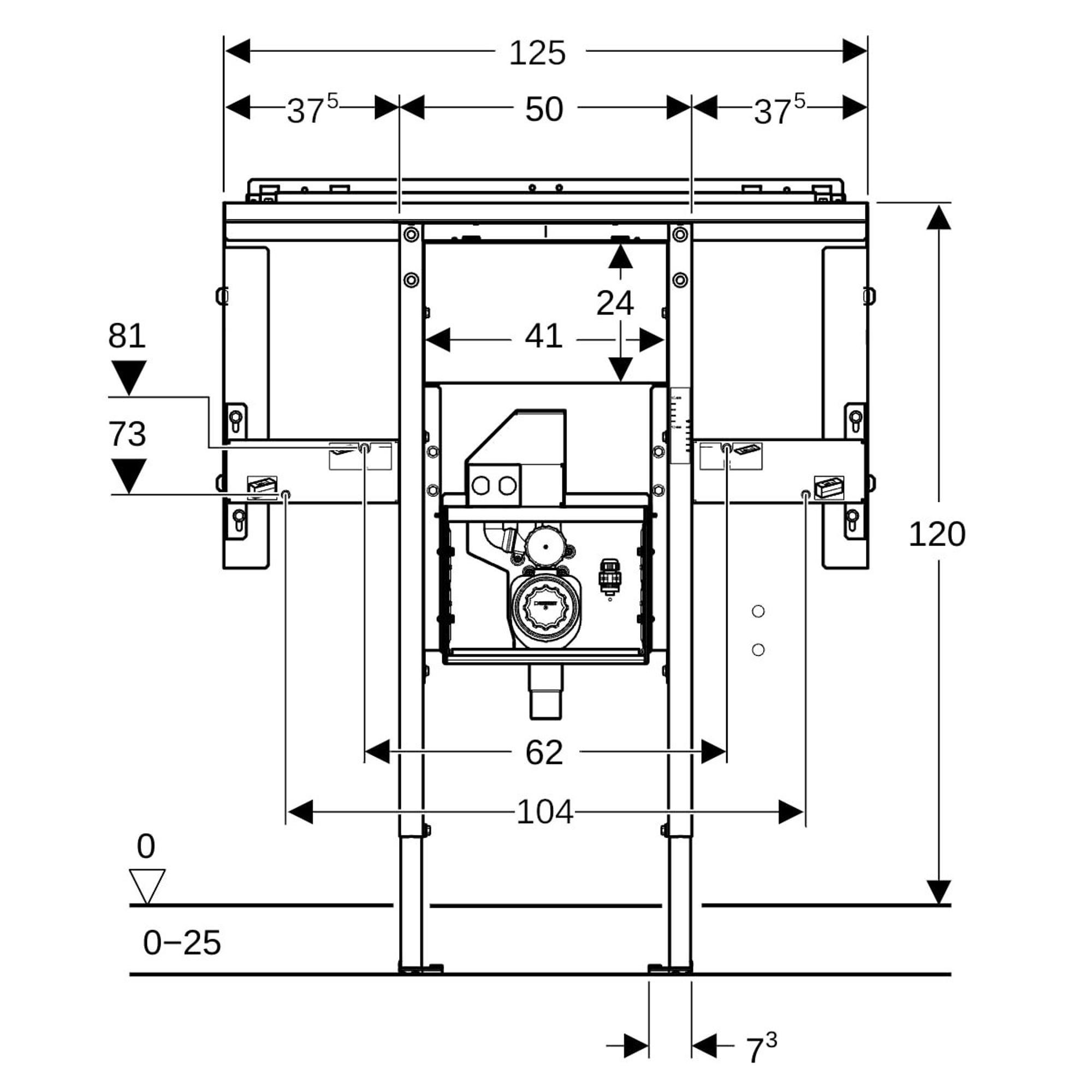 GeberitDuofixelement one wst, wandkr.r.hoog, met inb.sifon, b120 cm