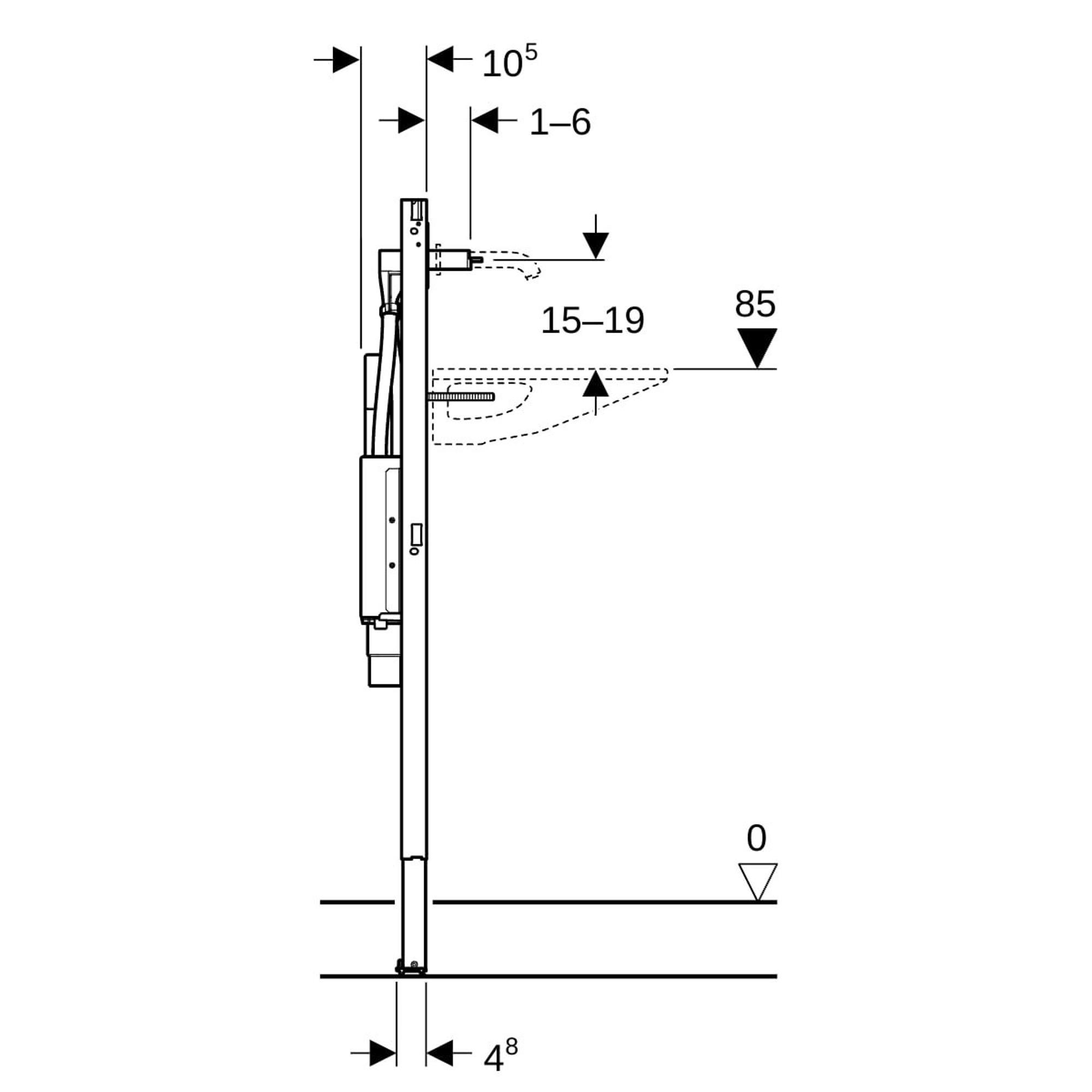 GeberitDuofixelement one wst, one w.kraan,d.hoog, inb.sifon, b120 cm