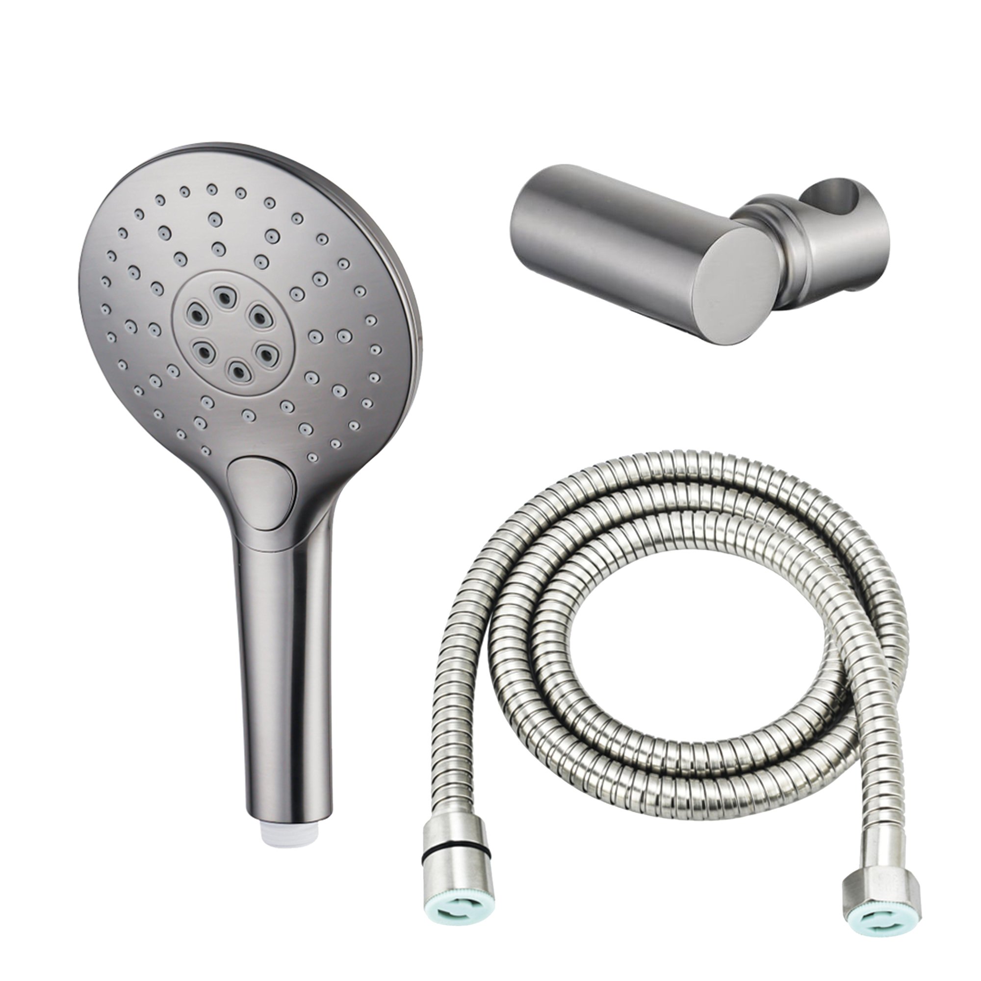 De set is uitgerust met metalen anti-twist doucheslang. Hierdoor wordt voorkomen dat de slang knikt tijdens het douchen. Zo wordt voorkomen dat de doucheslang gaat lekken en er ophopingen van water komen bij een beschadigd stukje slang. Een lange levensduur is dus gegarandeerd!