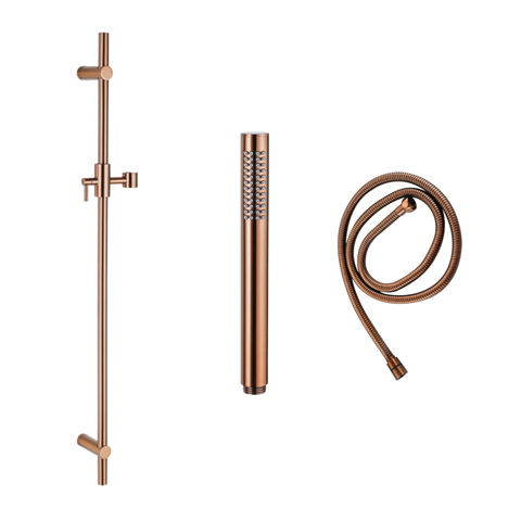 Fortifura Calvi glijstangset met staafhanddouche, metalen doucheslang Geborsteld koper PVD