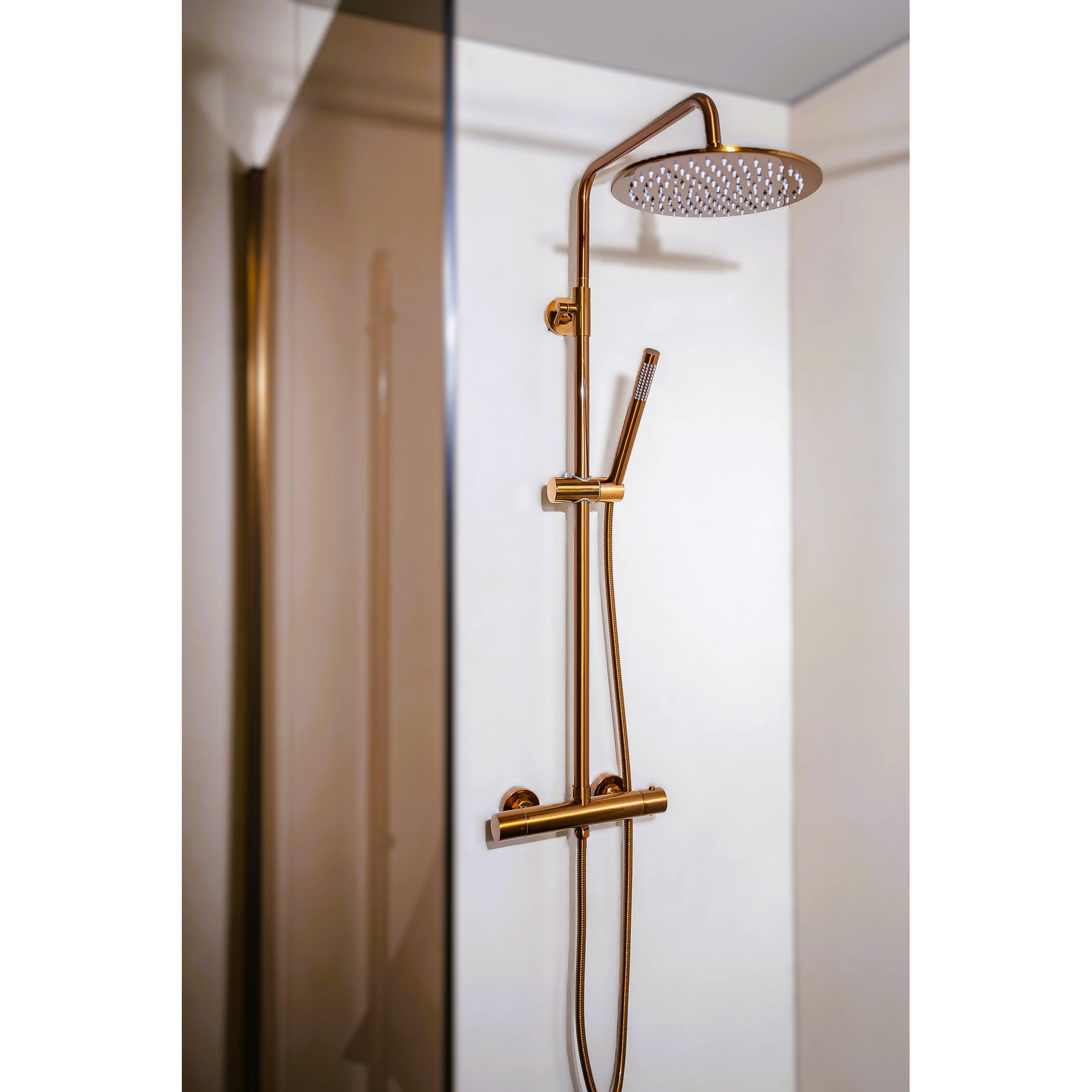 Fortifura Calvi Regendoucheset thermostatisch 25cm hoofddouche staafhanddouche Geborsteld koper PVD SHOWROOMMODEL