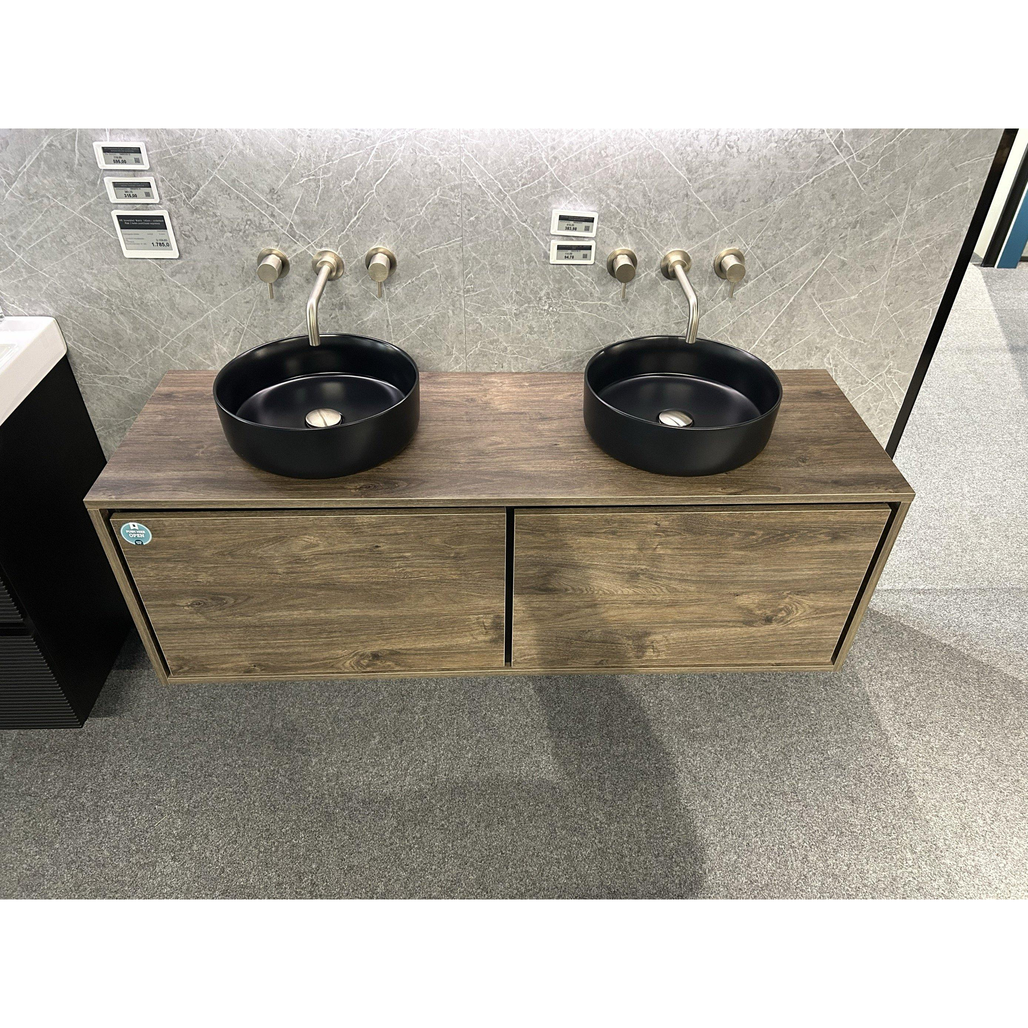 HR Badmeubelen Rize wastafelkast 2 hoge laden reeploos push2open 140 x 45 x 45 cm met Matrix Bovenblad espresso 2x Note waskom - 37x12cm m zwart SHWOROOMMODEL