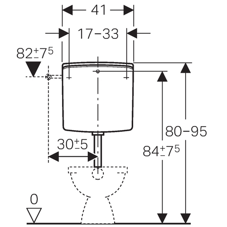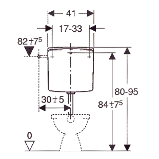 De bevestigingsmogelijkheden van dit reservoir variëren van 17 tot 33 cm, waardoor het een geschikte keuze is voor diverse badkamerconfiguraties. Deze flexibiliteit in installatie maakt het Geberit Twico reservoir een ideale keuze voor zowel nieuwe installaties als het upgraden van bestaande toiletten.