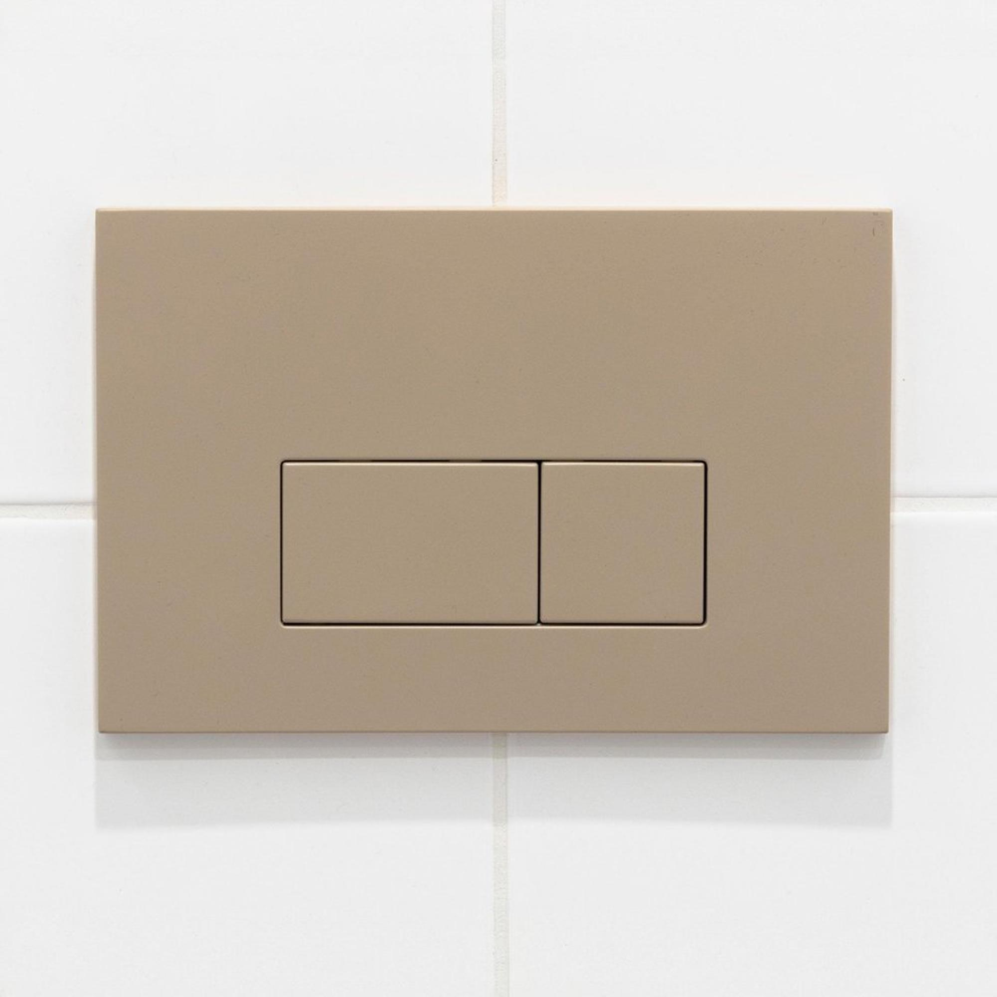 QeramiQ Dely Toiletset - 36.3x51.7cm - diepspoel - rimless - Geberit UP320 inbouwreservoir - softclose toiletzitting - taupe bedieningsplaat - rechtehoekige knoppen - mat beige