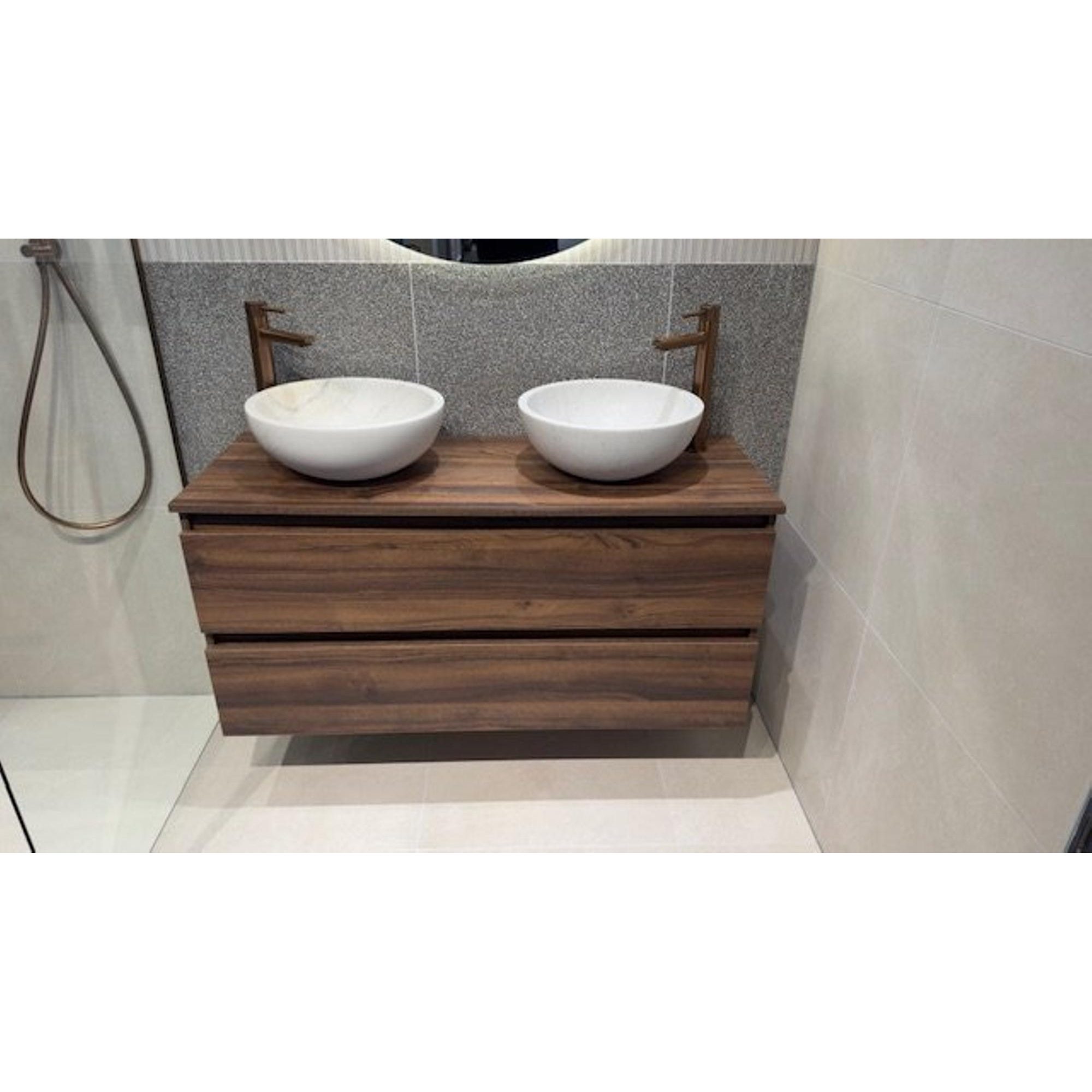 Adema Chaci Badkamermeubelset - 120cm - 2 lades - greeploos - noten (hout) met topblad 120 SHOWROOMMODEL