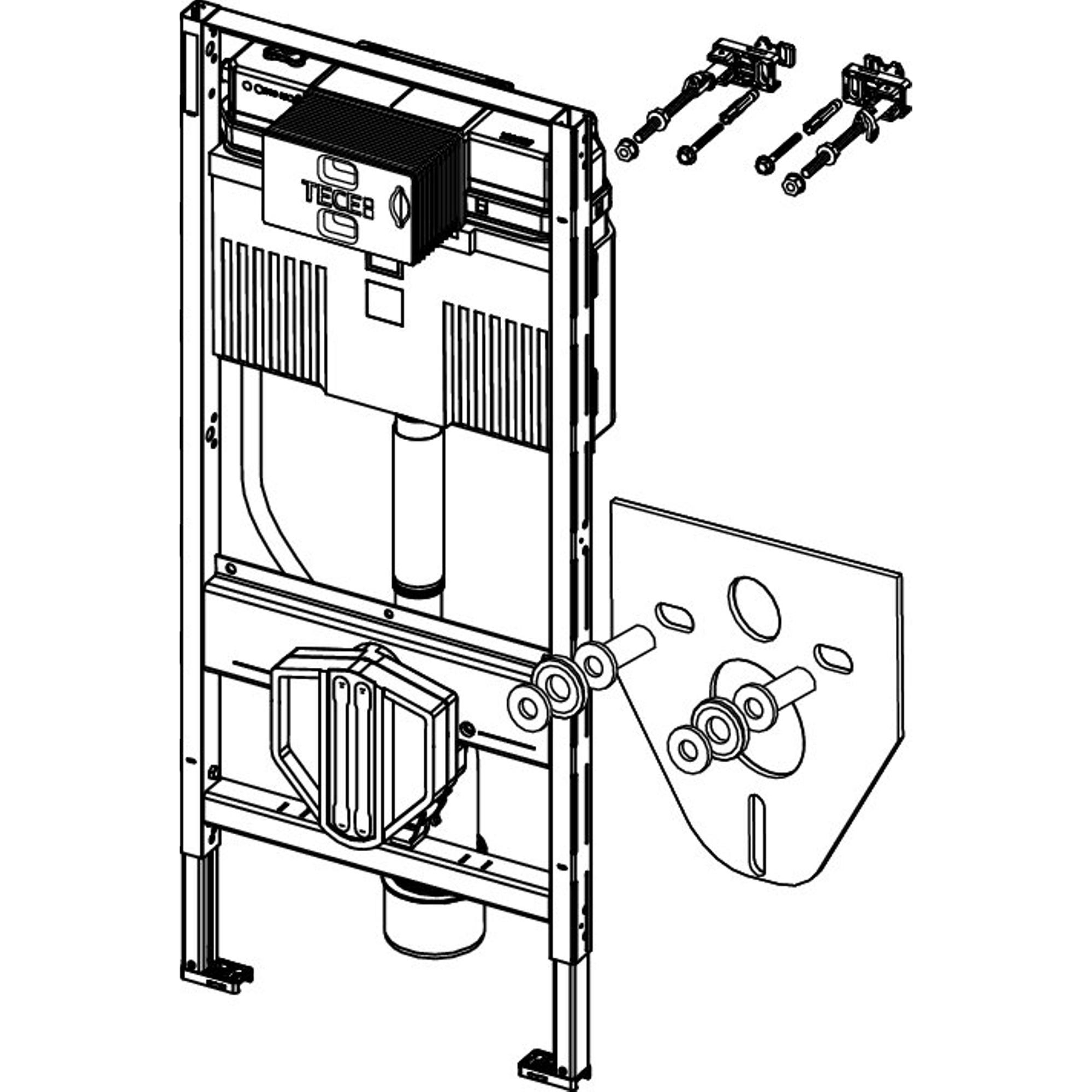 WC-inbouwframe inclusief "easy fit" bedieningsplaatmontage. Voor bevestiging aan TECEprofil profielbuizen of voor inbouw in metaal- of houtprofielwanden en als voorwand en hoekmodule; ook geschikt voor enkelblokmontage.