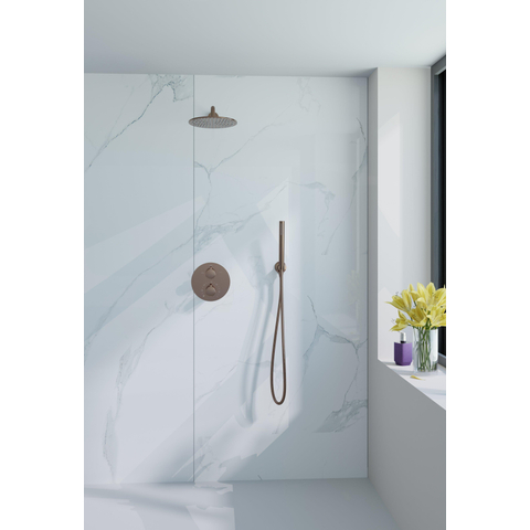 Stel je voor dat je elke dag kunt genieten van een luxueuze spa-ervaring in je eigen badkamer, omringd door de ultieme combinatie van stijl en functionaliteit. Deze prachtige inbouw regendoucheset met rozetten in een verfijnde geborsteld koperen afwerking brengt een vleugje elegantie en moderniteit in jouw dagelijkse routine. Met een thermostatische functie voor een precieze temperatuurregeling en een 25cm hoofddouche die zorgt voor een ontspannende regenbui, is deze set een must-have voor iedereen die op zoek is naar een upgrade van hun doucheruimte.