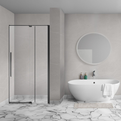 Stap binnen in luxe en stijl met deze prachtige nisdeur van Aqua Vista. Met zijn elegante ontwerp en hoogwaardige afwerking is deze Taviano Linea nisdeur een perfecte aanvulling op elke moderne badkamer. Laat je betoveren door de verfijnde uitstraling en functionaliteit van deze mat zwarte nisdeur, compleet met een handige montageset voor eenvoudige installatie.