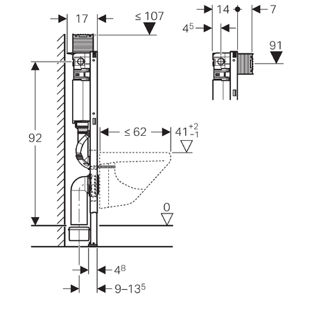 - Voor wand-wc's met aansluitmaten conform EN 33:2011