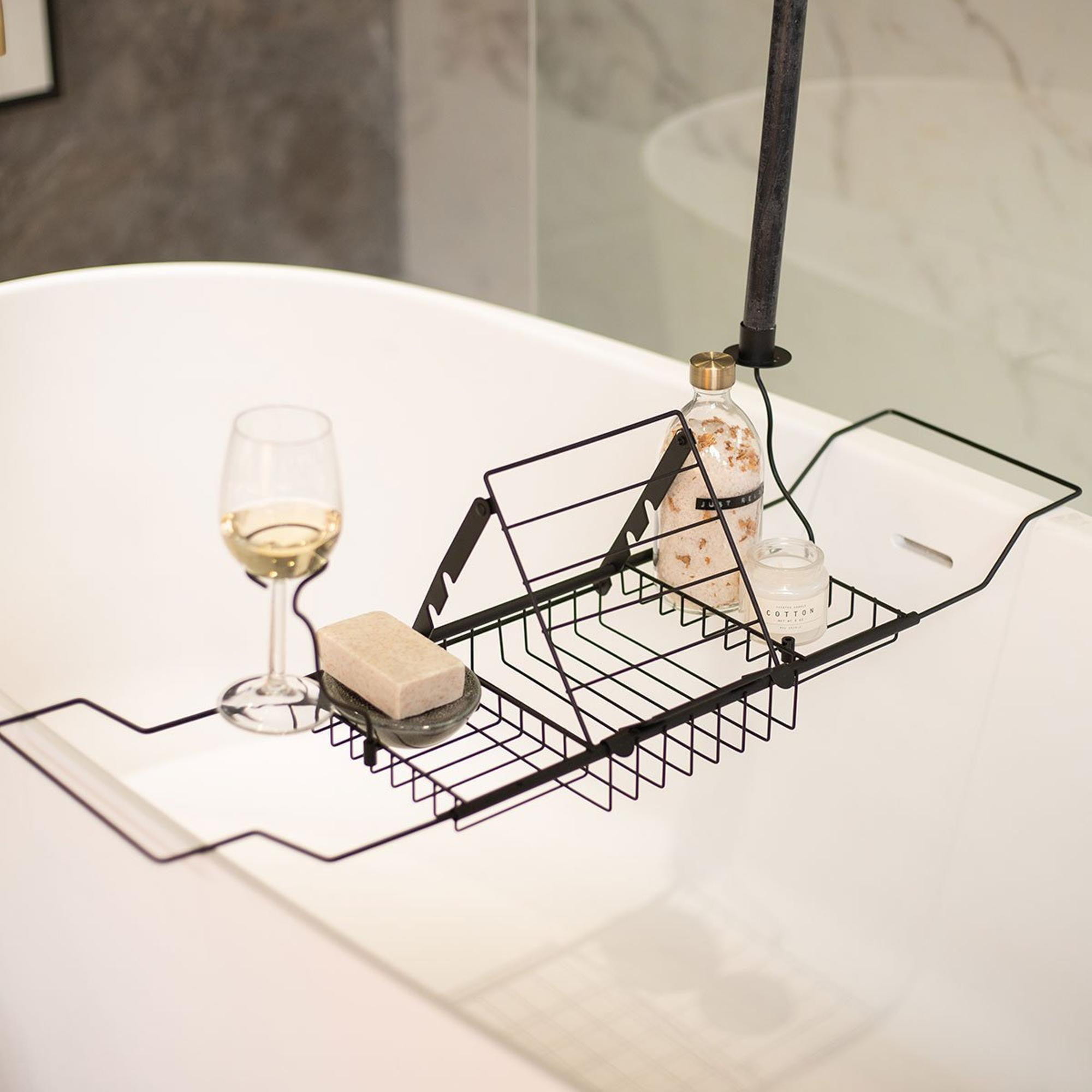 Met het uitschuifbare ontwerp van dit badrek kun je eenvoudig de gewenste breedte aanpassen, waardoor het perfect past op verschillende badafmetingen. De stevige constructie zorgt ervoor dat je veilig je boeken, tablet of een glas wijn kunt plaatsen terwijl je ontspant in bad. De zwarte afwerking geeft een moderne uitstraling en past goed bij diverse badkamerstijlen, van klassiek tot eigentijds.