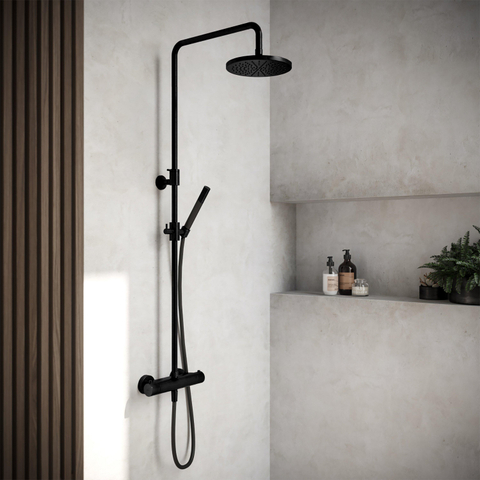 Hotbath Cobber thermostatische regendoucheset met 20cm ronde hoofddouche staafhanddouche mat zwart SHOWROOMMODEL