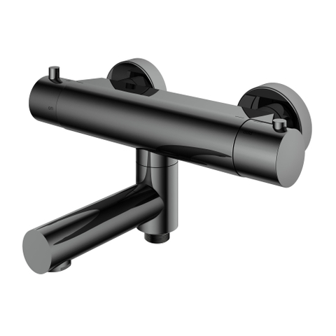 Hotbath Buddy thermostatische badmengkraan met wegdraaibare uitloop omstel uitloop zwart chroom SHOWROOMMODEL