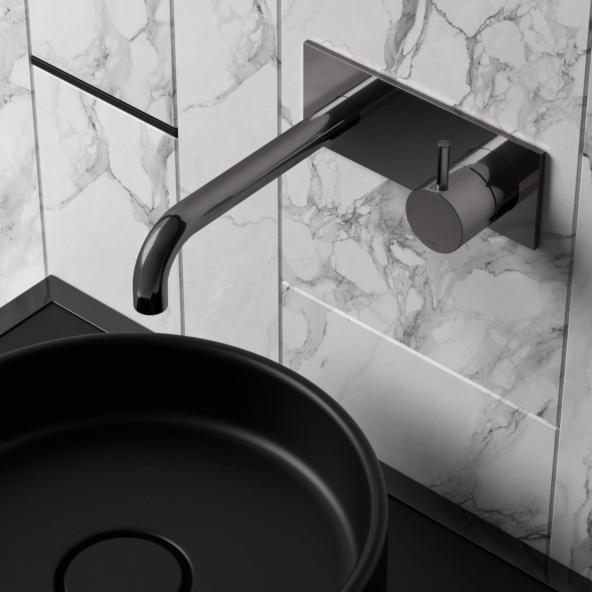 Hotbath Cobber afbouwdeel inbouw wastafelmengkraan met achterplaat en 18 cm uitloop zwart chroom excl. inbouwdeel SHOWROOMMODEL