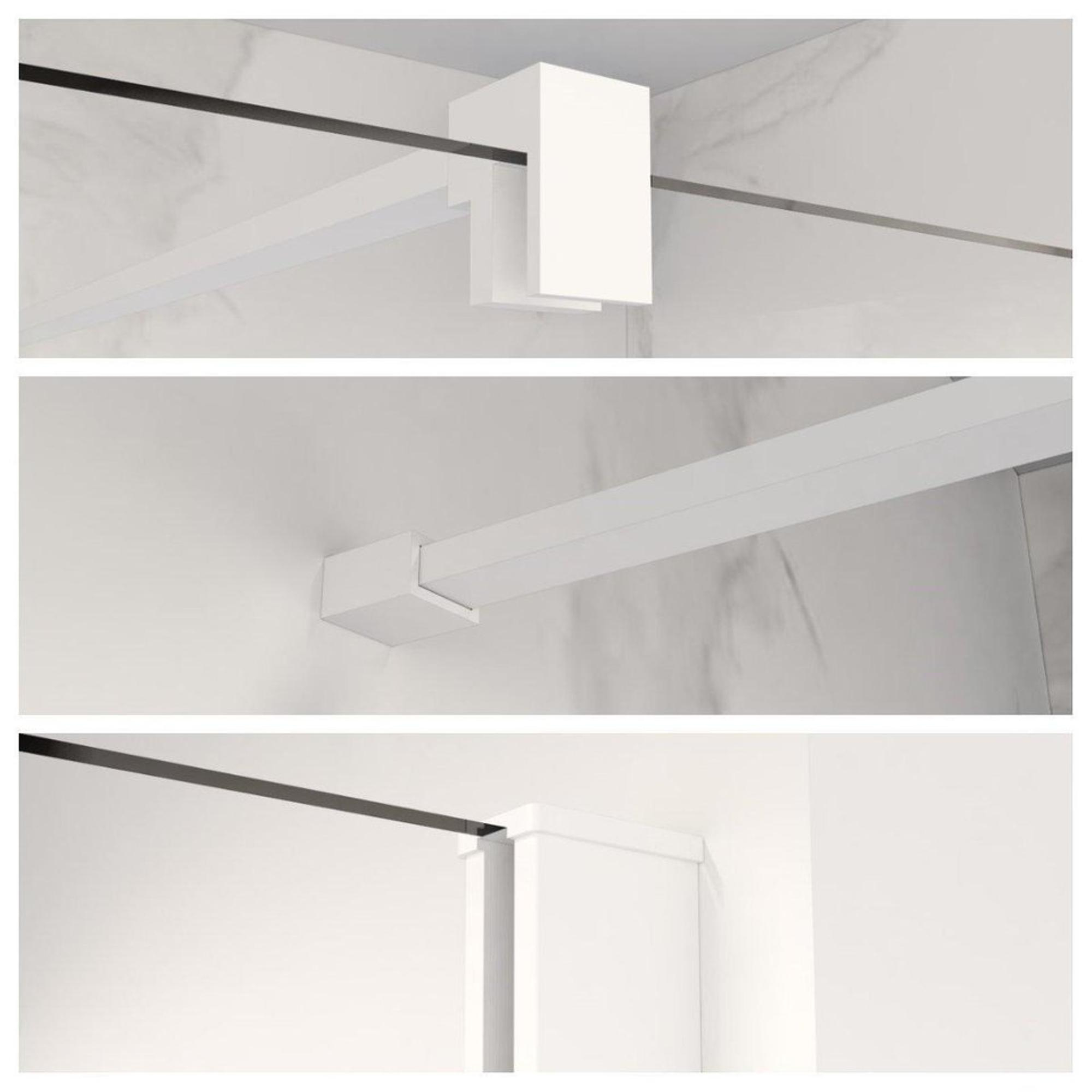 Fortifura Galeria Halfhoge Inloopdouche - 120x80cm - mat glas - 8mm - nano - met profiel en stabilisatiestang - Mat Wit