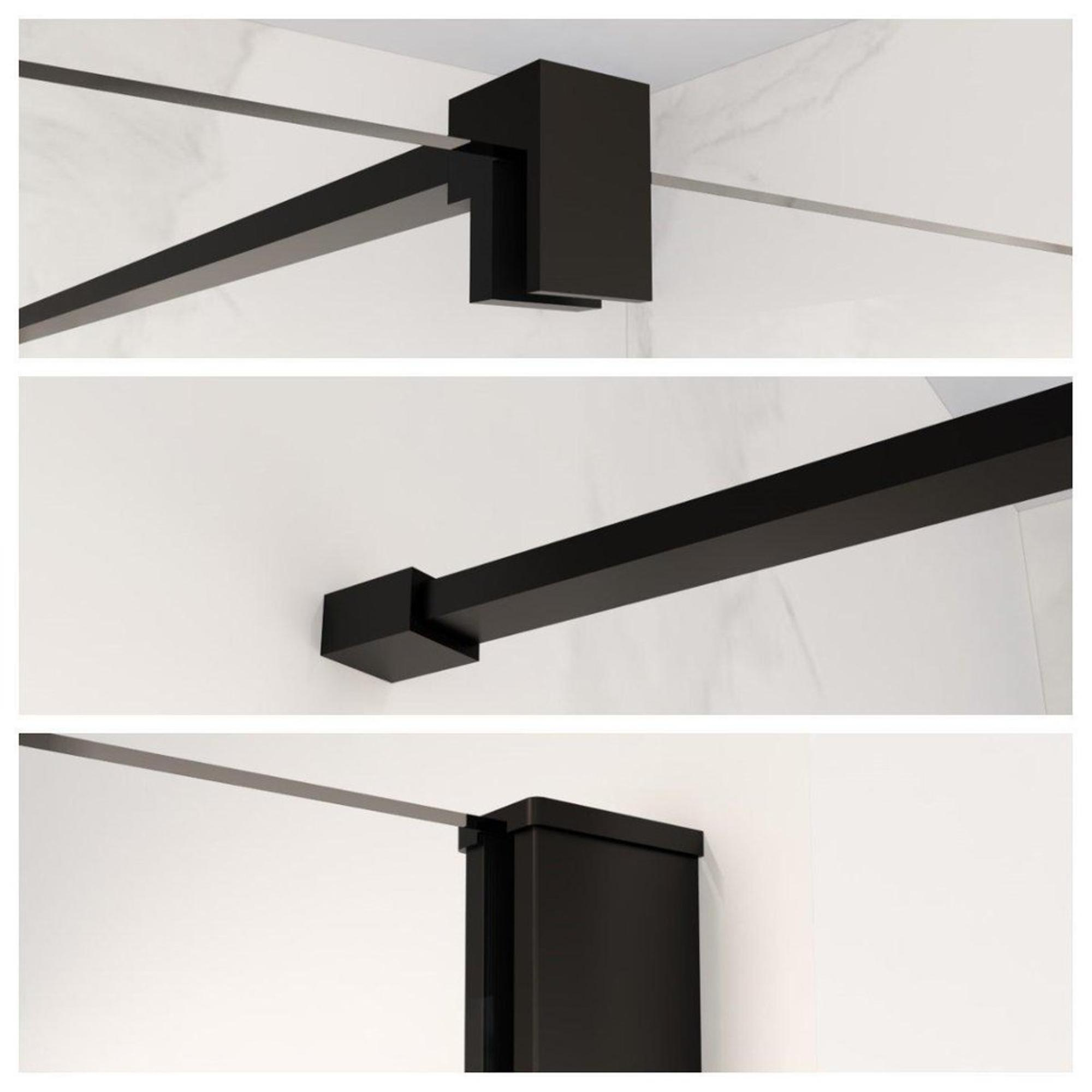 Met een dikte van 8mm gehard glas en nano-coating, biedt deze inloopdouche niet alleen een moderne uitstraling, maar ook duurzaamheid en gemak in onderhoud. De stabilisatiestang zorgt voor extra stevigheid en veiligheid, terwijl het mat zwarte profiel een eigentijdse touch toevoegt aan het geheel.